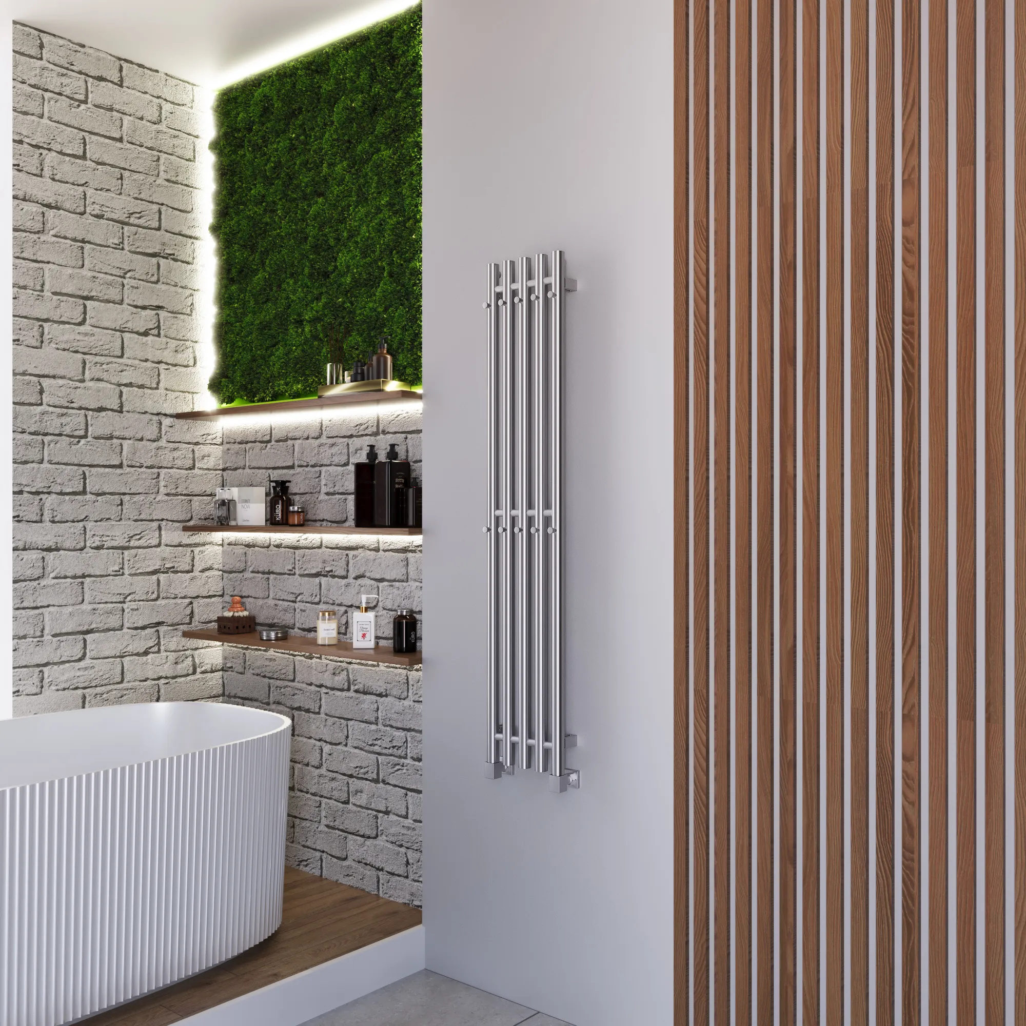 Универсальное подключение к сети дают возможность подключения полотенцесушителя и слева и справа. Скрытое подключение обеспечивает эстетичный внешний вид при котором нет видимых проводов. В комплекте так же есть кабель-вилка длиной 100 см для обычного подключения через розетку.