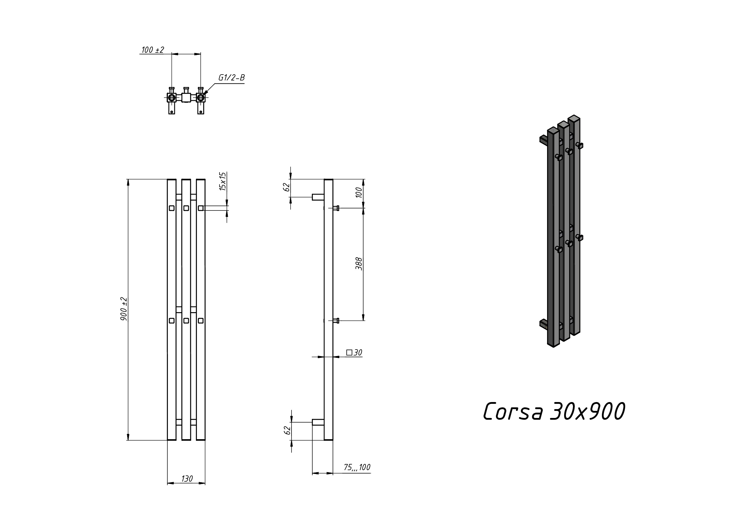 Полотенцесушитель электрический Grota Corsa 130х900 черный