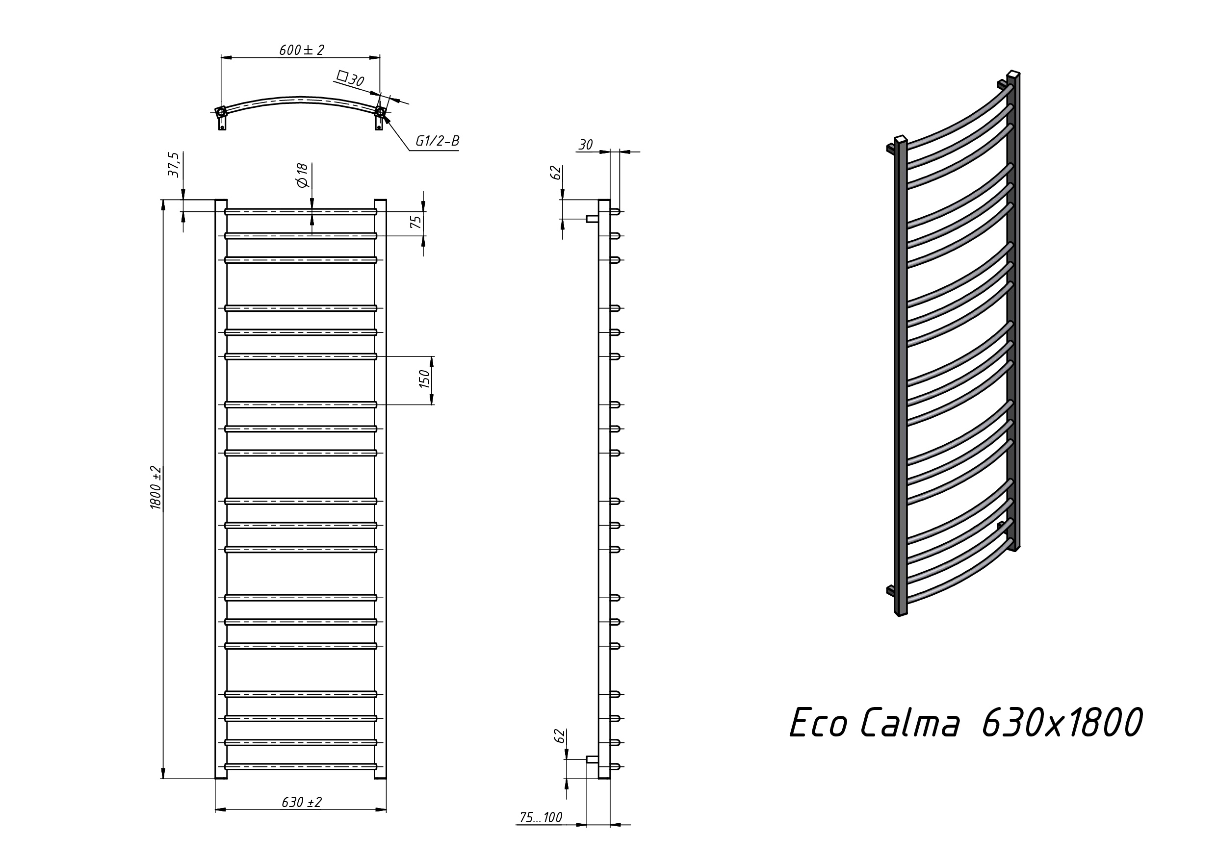 Полотенцесушитель электрический Grota Eco Calma 630x1800 белый