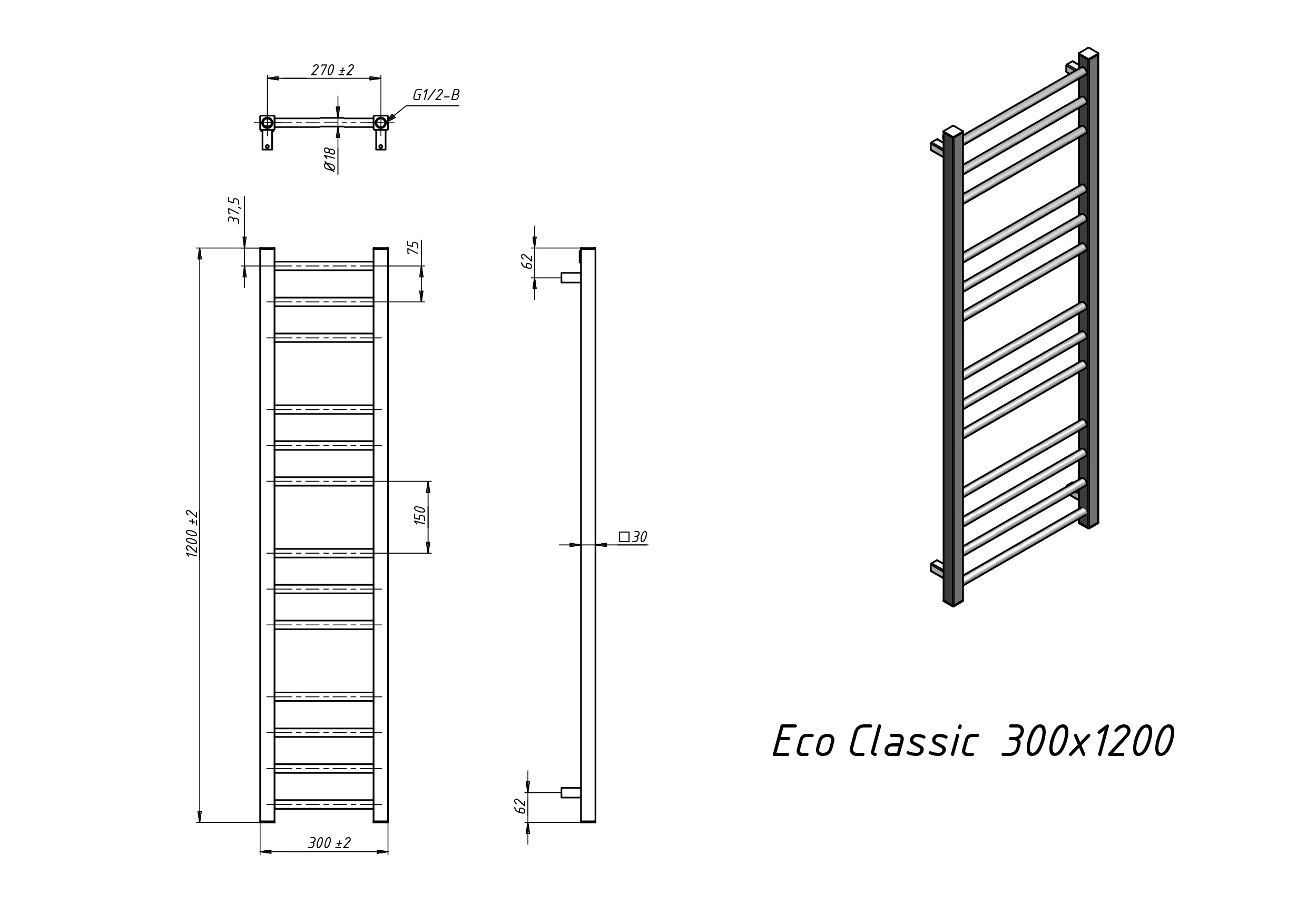 Полотенцесушитель электрический Grota Eco Classic 300x1200 черный