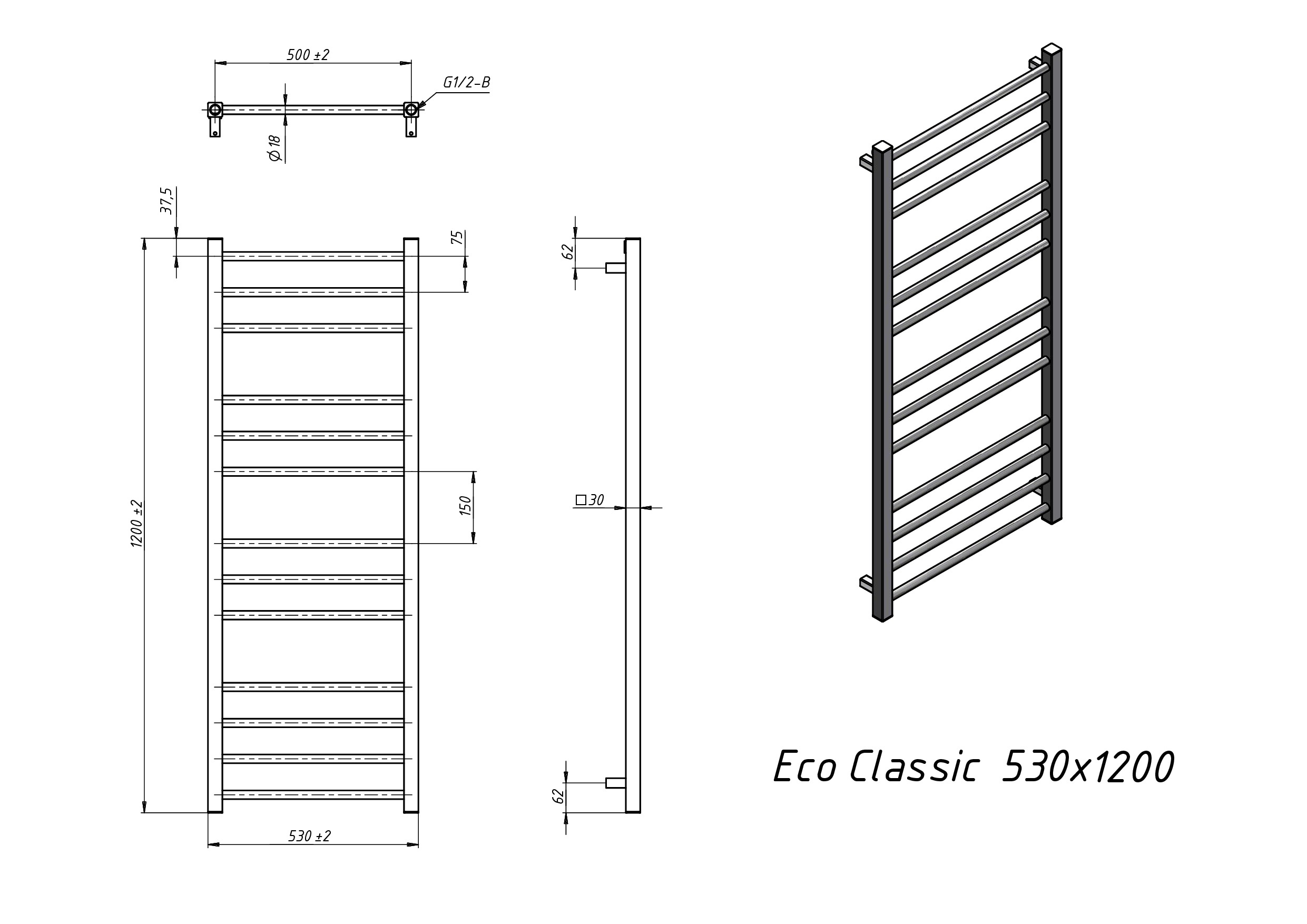 Полотенцесушитель электрический Grota Eco Classic 530x1200 белый
