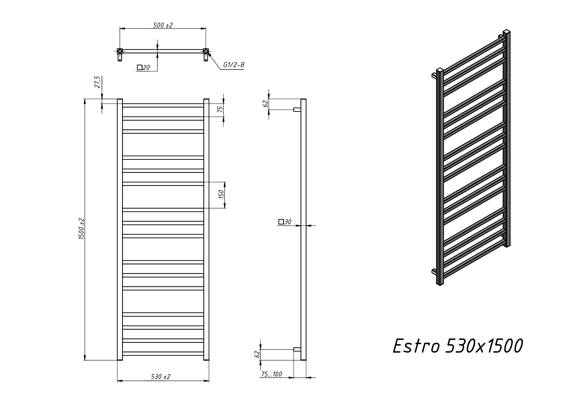 Estro 530x1500 N RAL9005 EL