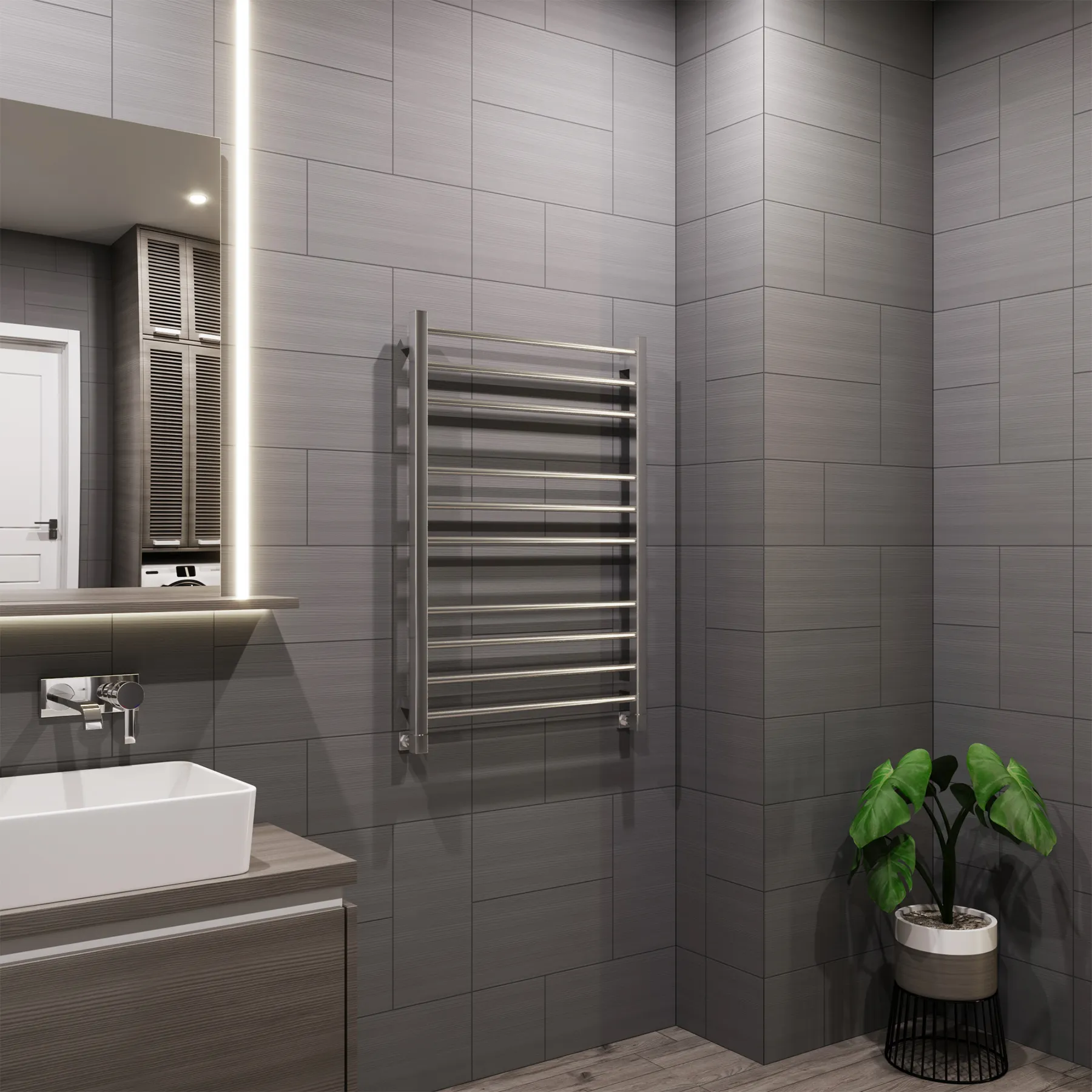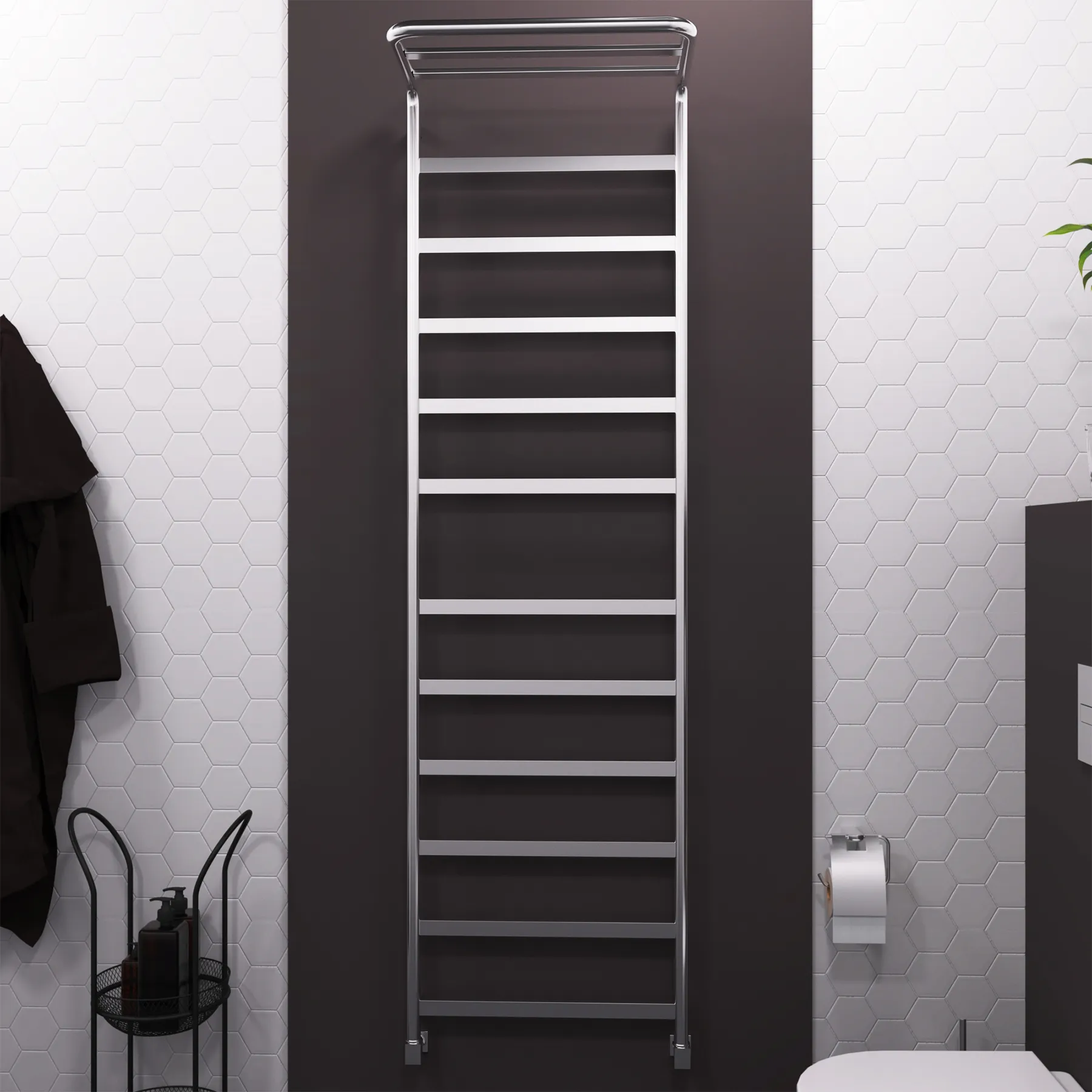 полотенцесушитель, перчатки, комплект дюбелей, винтов, шайб, болтов с шестигранной головкой, шестигранный ключ, кран Маевского, инструкция по монтажу