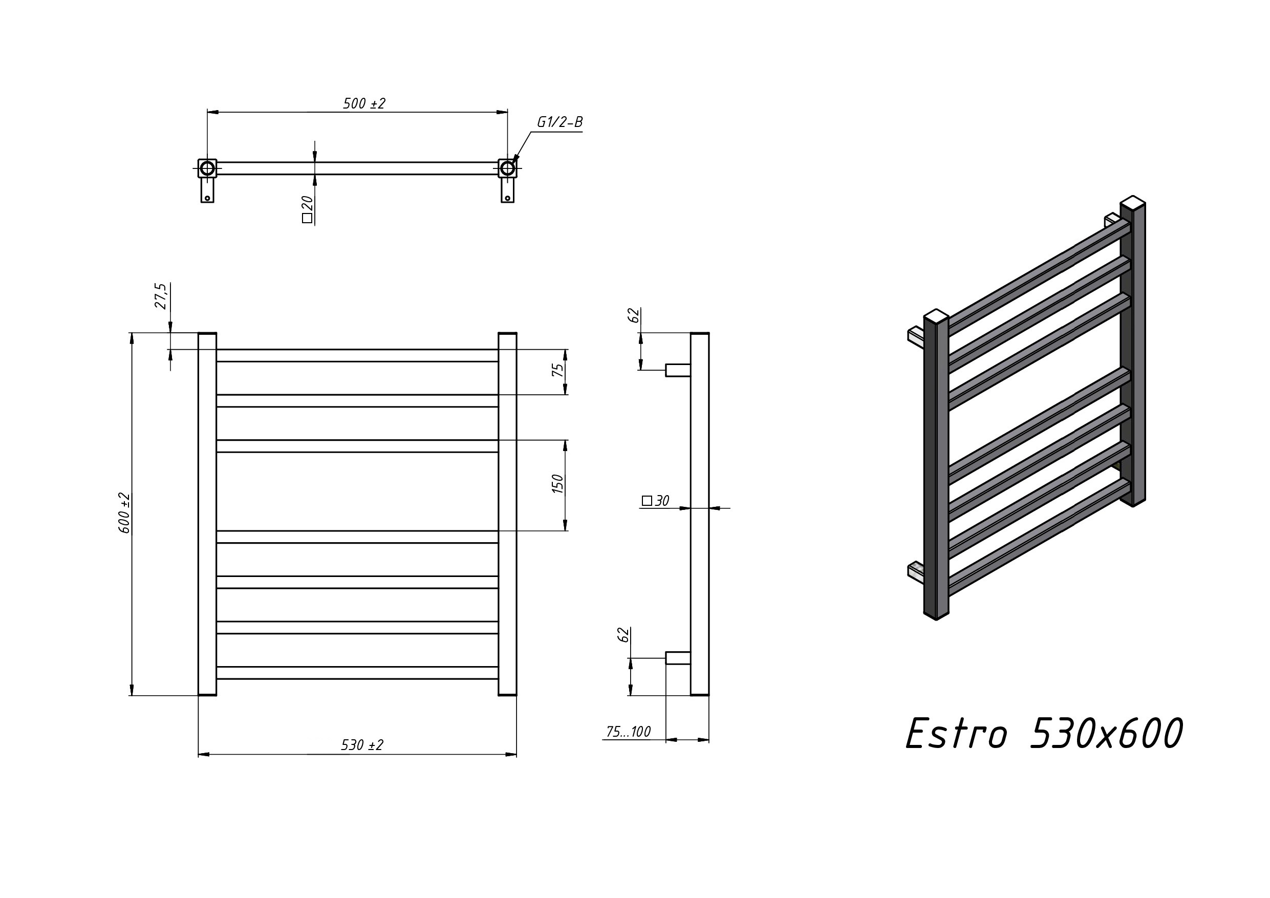 Полотенцесушитель электрический Grota Estro 530x600 черный