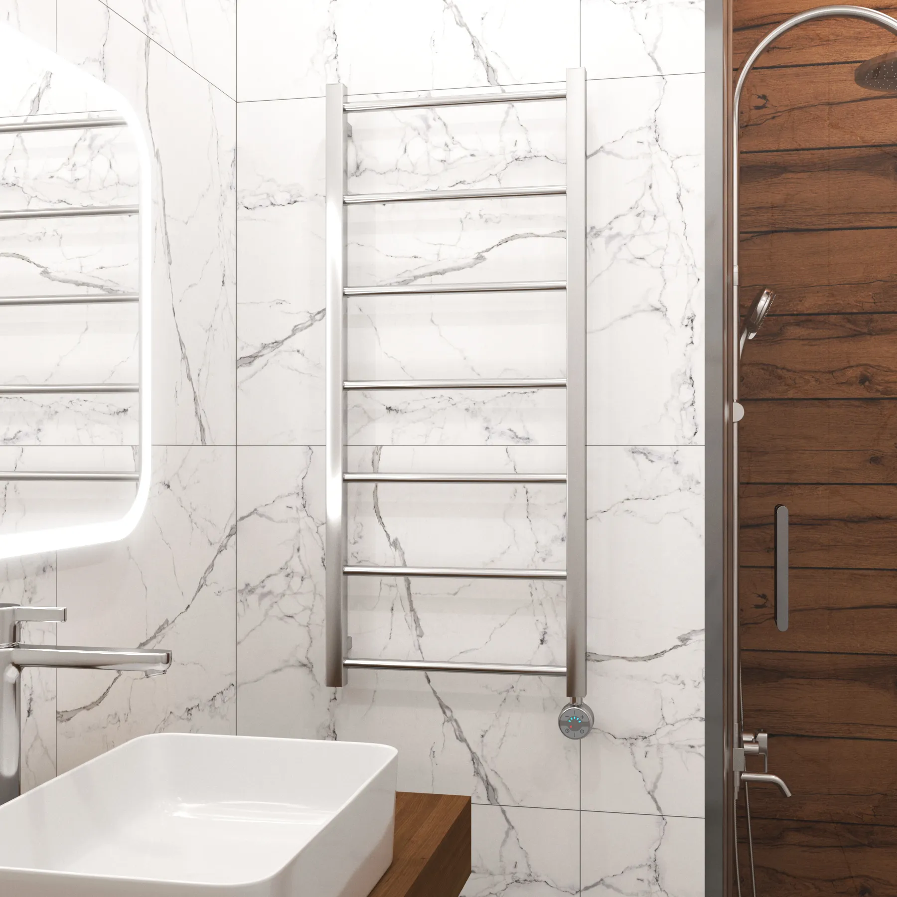 полотенцесушитель, перчатки, комплект дюбелей, винтов, шайб, болтов с шестигранной головкой, шестигранный ключ, кран Маевского, инструкция по монтажу