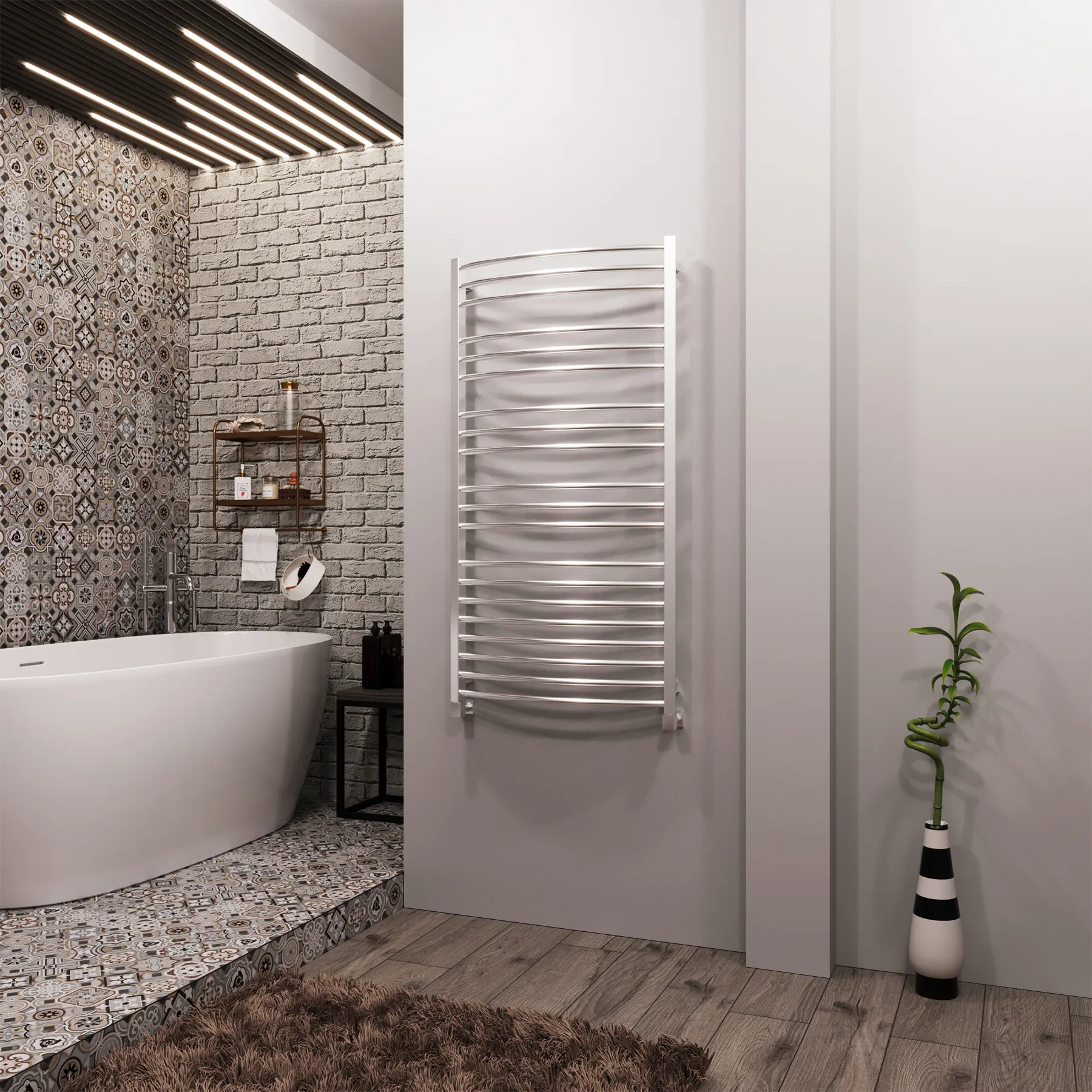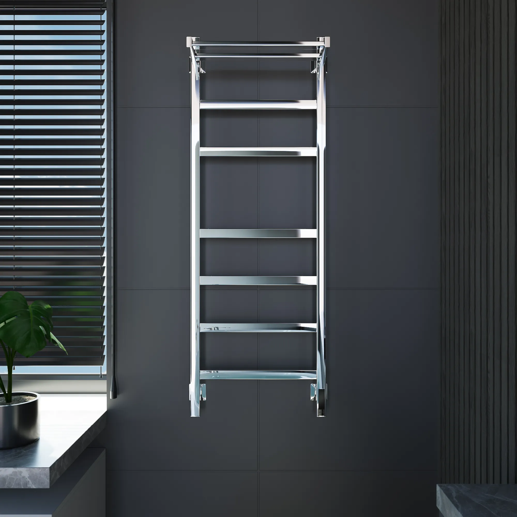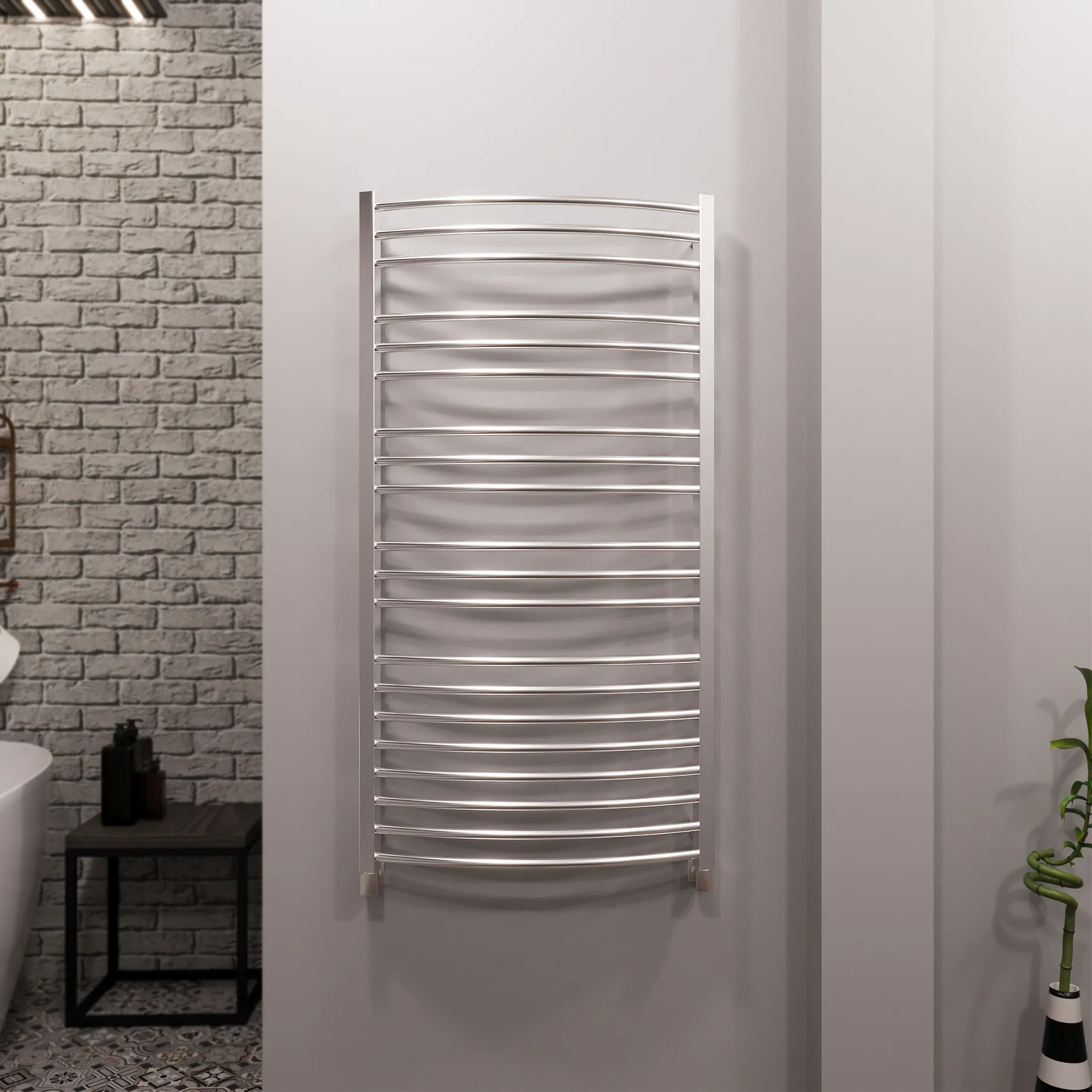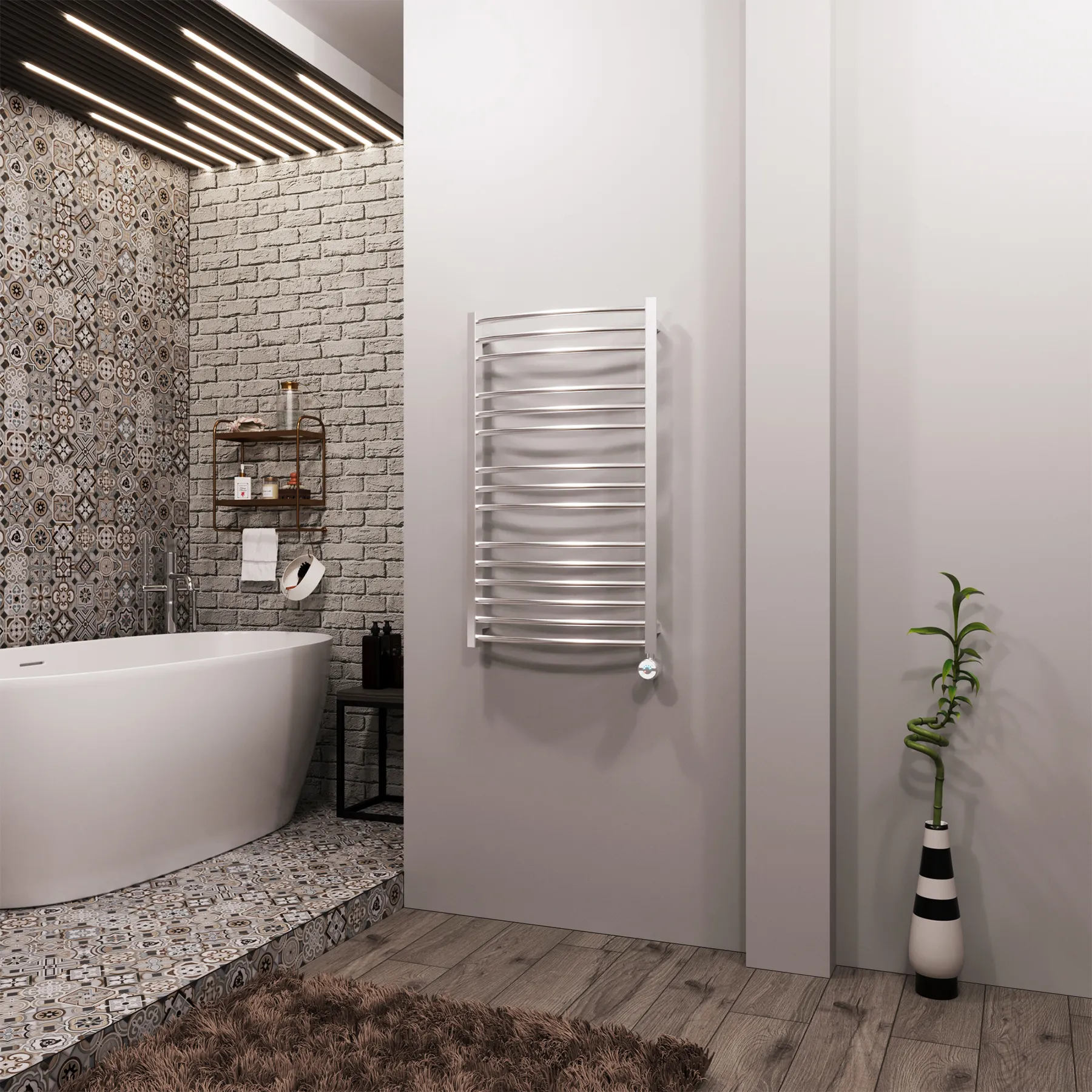 Универсальное подключение к сети дают возможность подключения полотенцесушителя и слева и справа. Скрытое подключение обеспечивает эстетичный внешний вид при котором нет видимых проводов. В комплекте так же есть кабель-вилка длиной 100 см для обычного подключения через розетку.