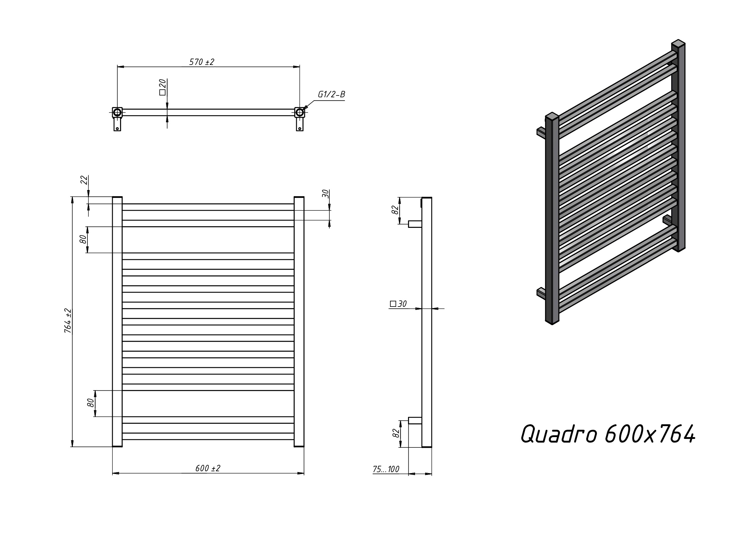 Полотенцесушитель электрический Grota Quadro 600х764 хром матовый