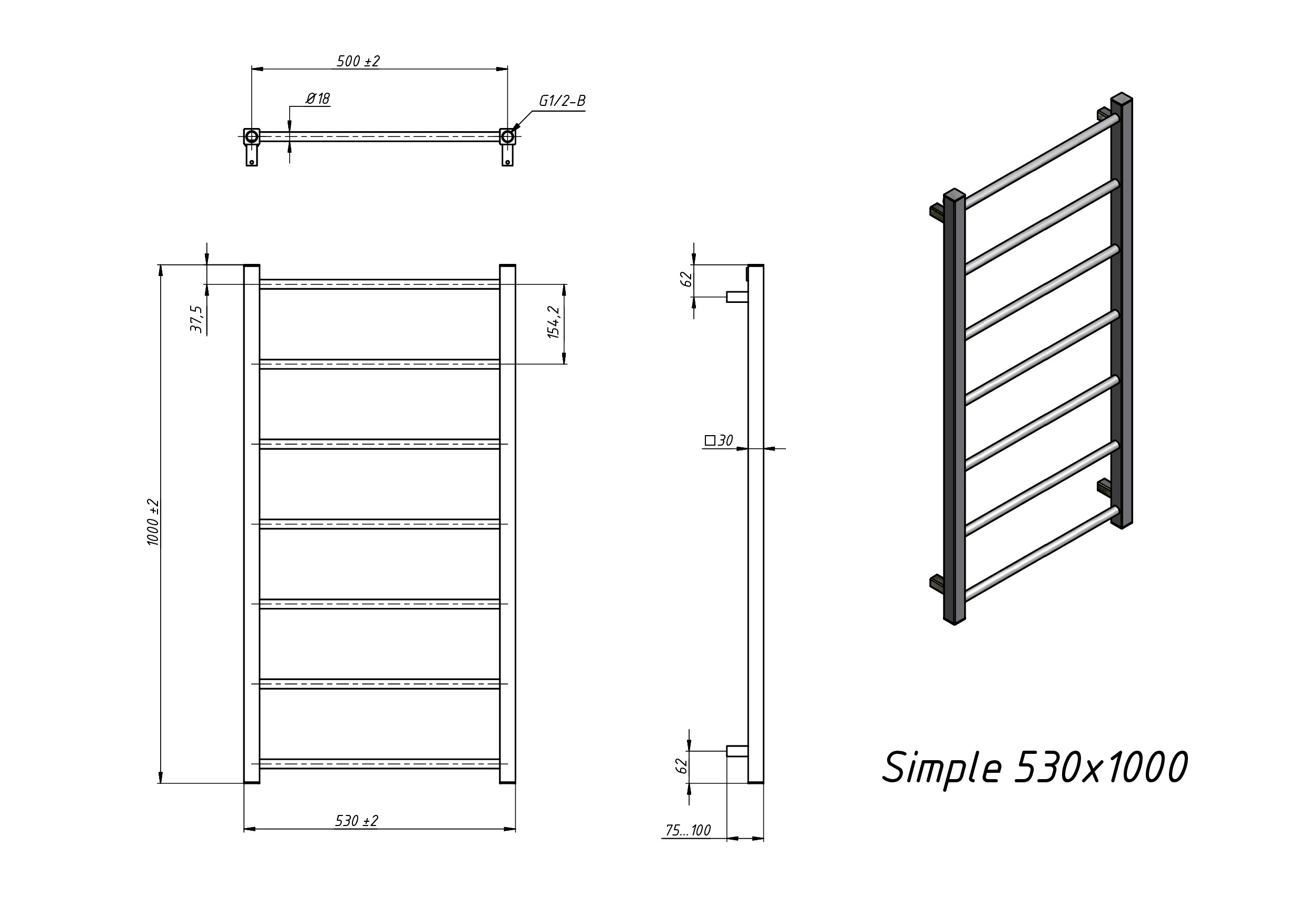 Полотенцесушитель электрический Grota Simple 530x1000 хром матовый