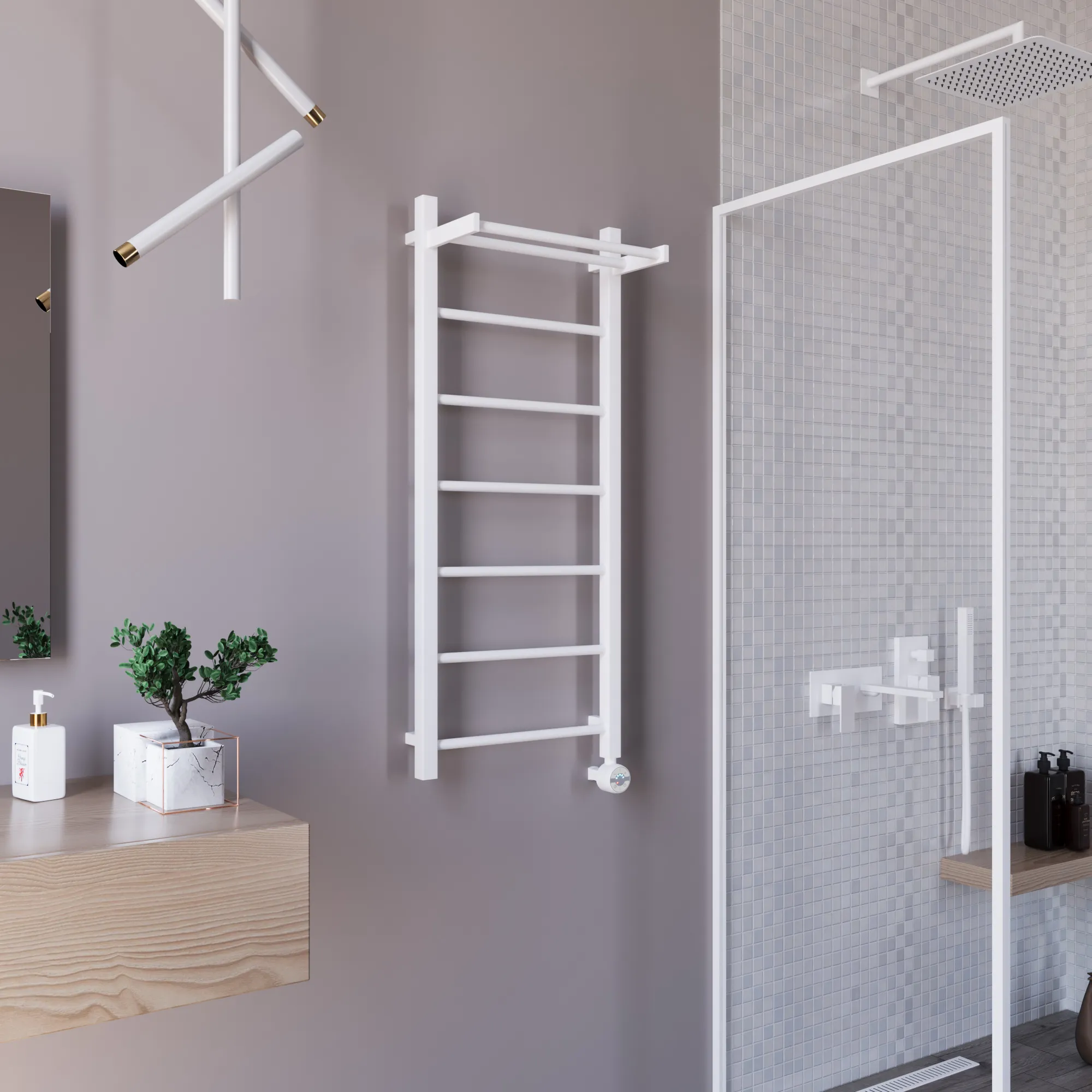 Полотенцесушитель электрический, перчатки, комплект дюбелей, винтов, шайб, болтов с шестигранной головкой, шестигранный ключ, кран Маевского, инструкция по монтажу