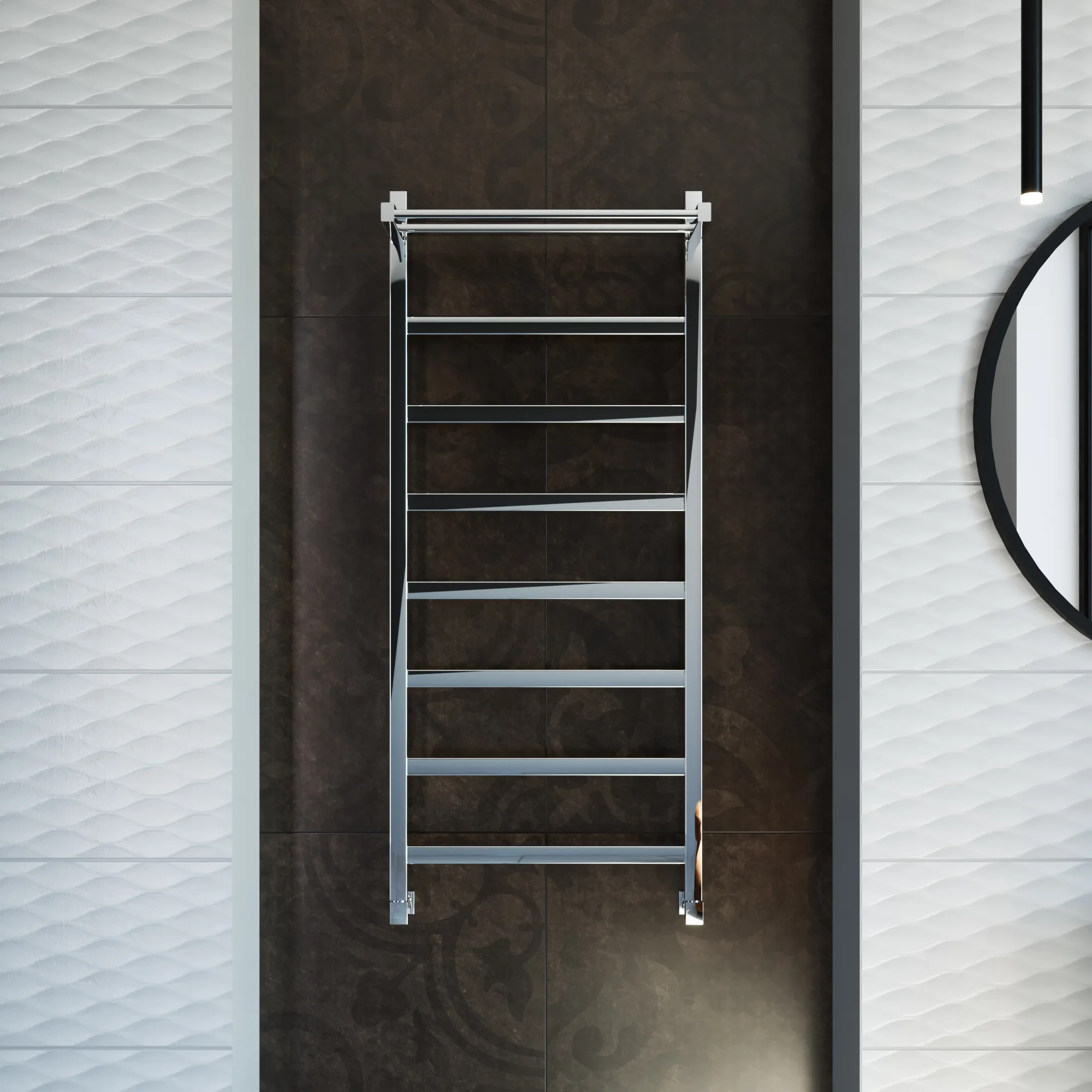 Универсальное подключение к сети дают возможность подключения полотенцесушителя и слева и справа. Скрытое подключение обеспечивает эстетичный внешний вид при котором нет видимых проводов. В комплекте так же есть кабель-вилка длиной 100 см для обычного подключения через розетку.