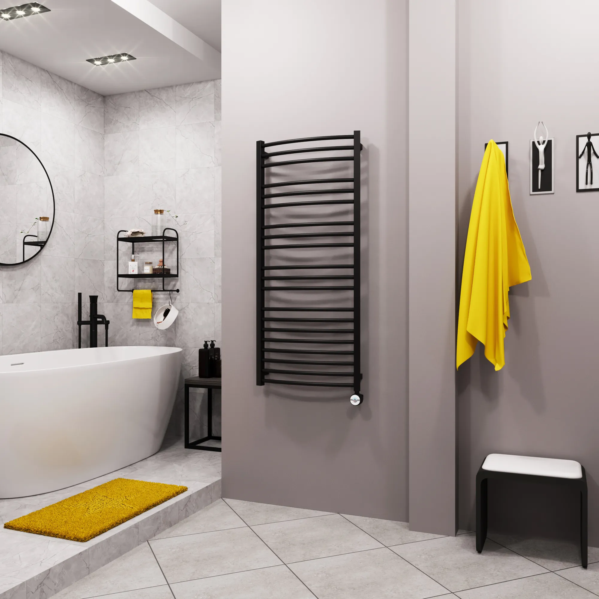 полотенцесушитель, перчатки, комплект дюбелей, винтов, шайб, болтов с шестигранной головкой, шестигранный ключ, кран Маевского, инструкция по монтажу