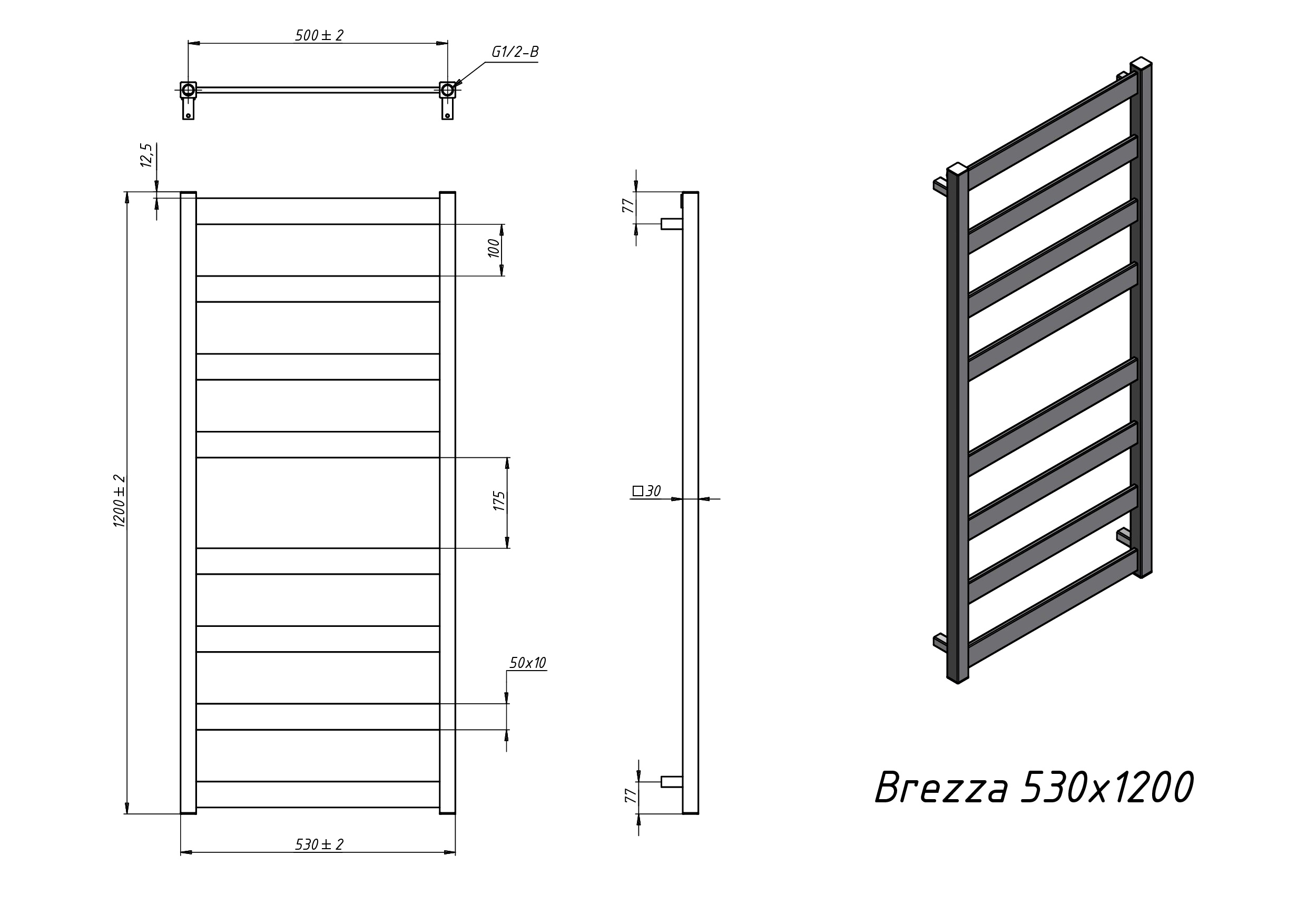 Полотенцесушитель водяной Grota Brezza 530x1200 белый