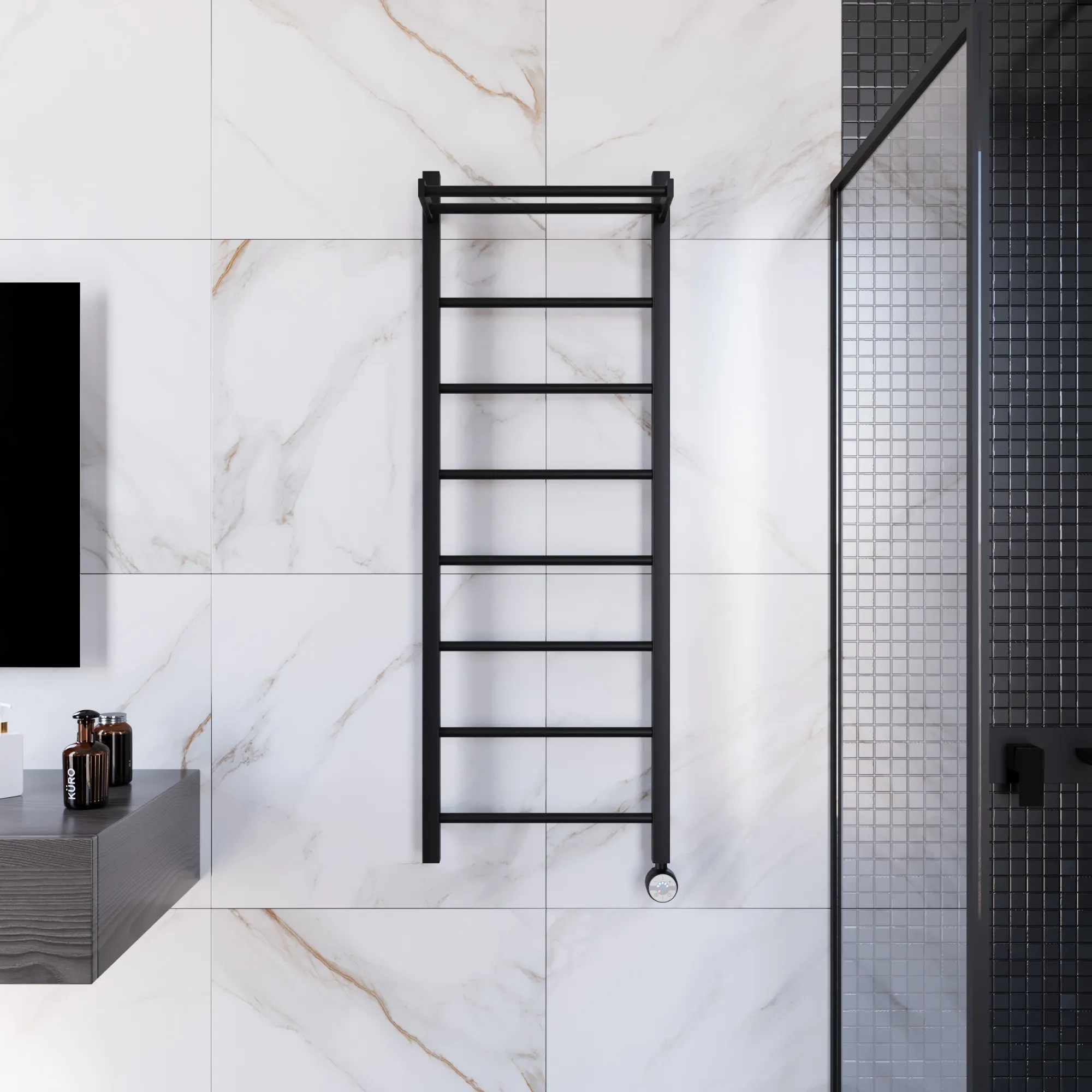 полотенцесушитель, перчатки, комплект дюбелей, винтов, шайб, болтов с шестигранной головкой, шестигранный ключ, кран Маевского, инструкция по монтажу
