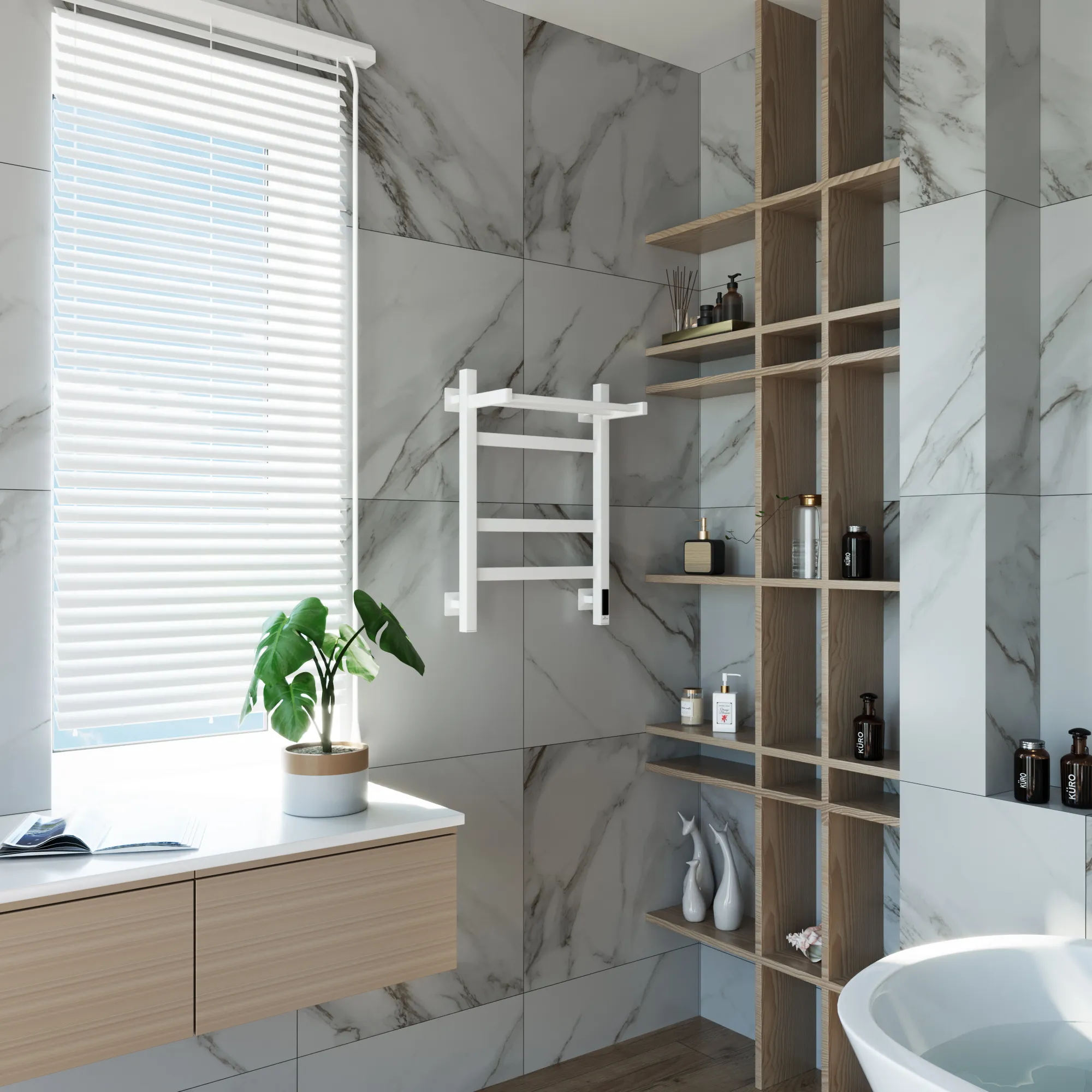полотенцесушитель, перчатки, комплект дюбелей, винтов, шайб, болтов с шестигранной головкой, шестигранный ключ, кран Маевского, инструкция по монтажу