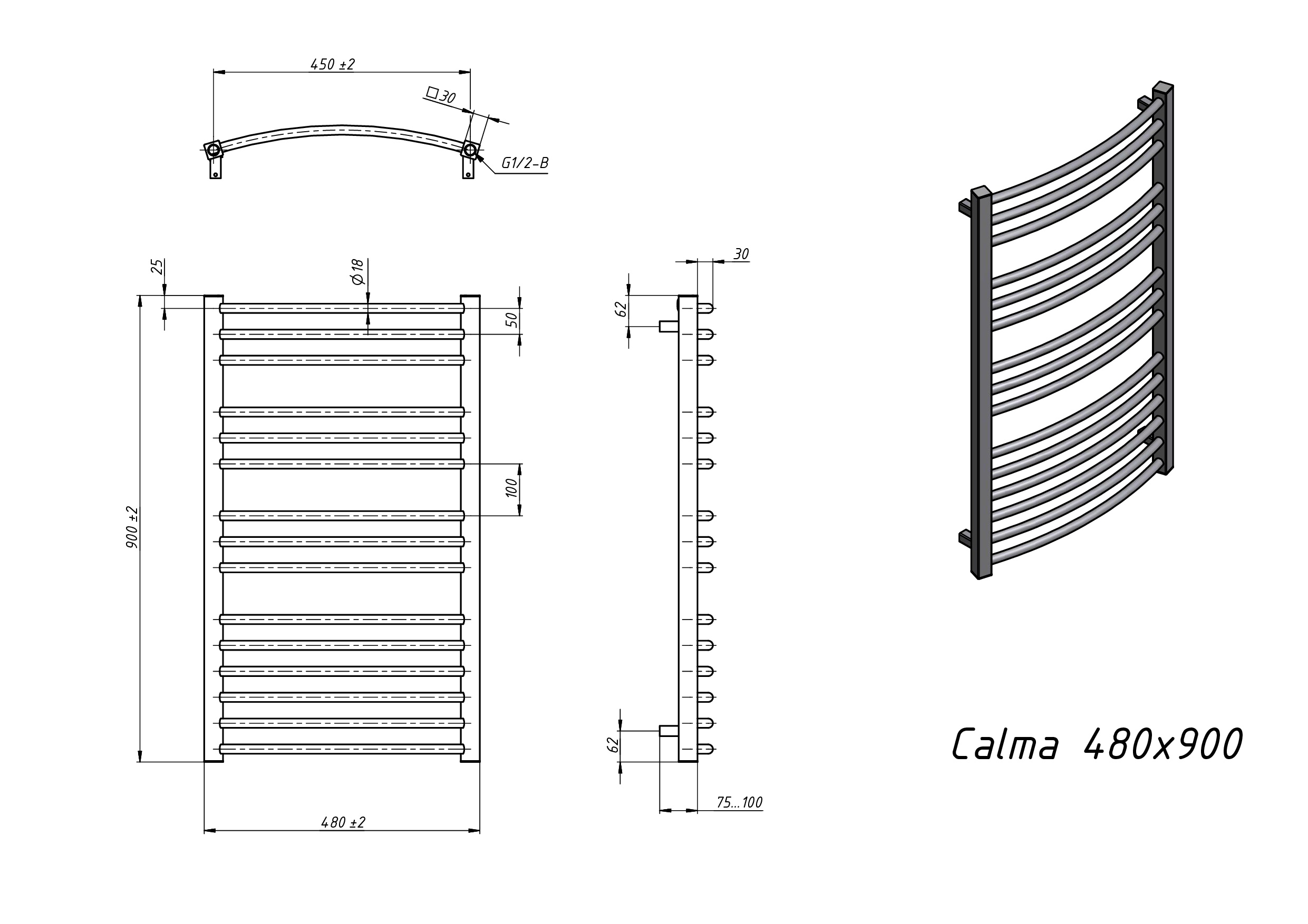 calma 480x900 N RAL9016
