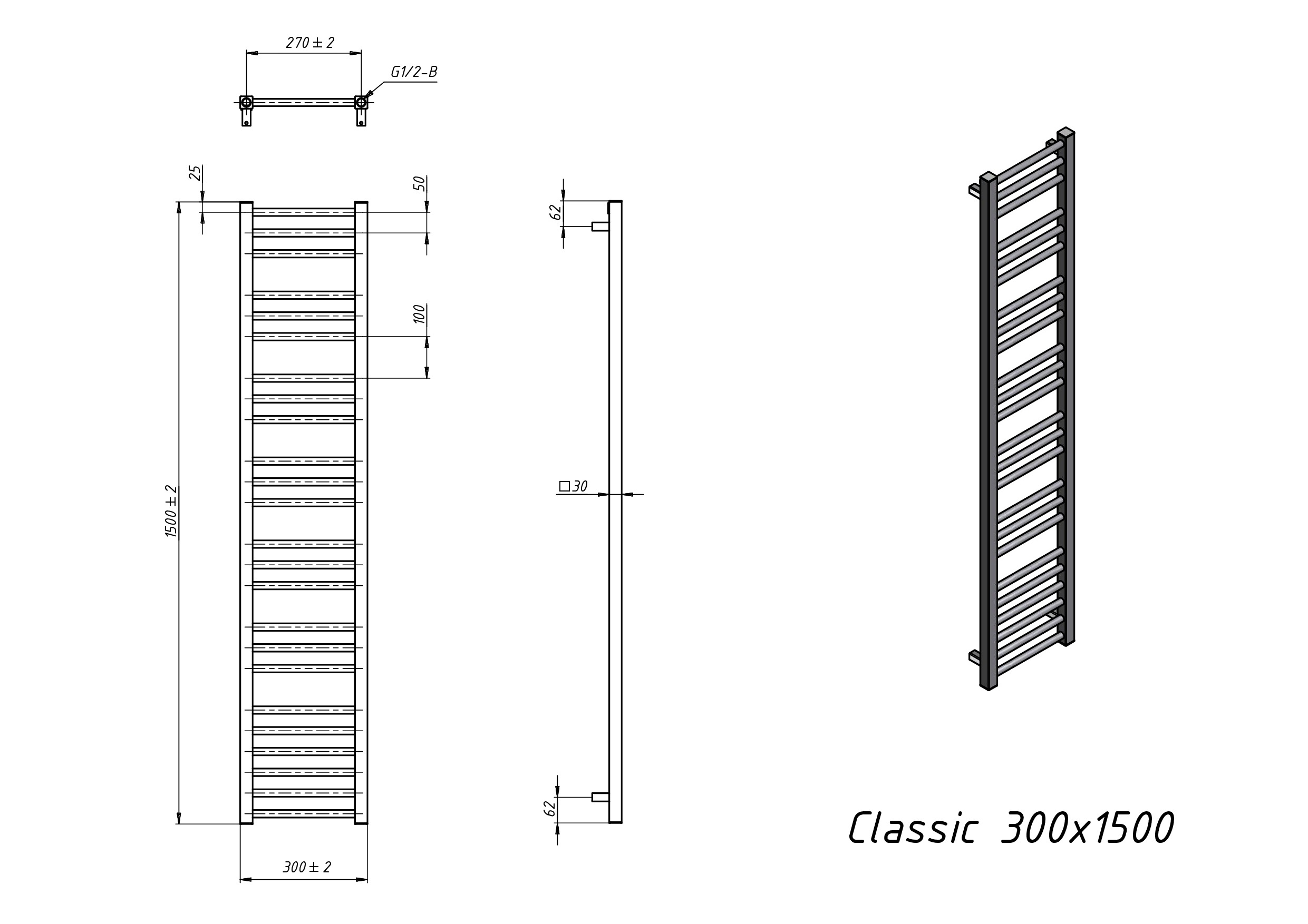 Полотенцесушитель водяной Grota Classic 300x1500 черный
