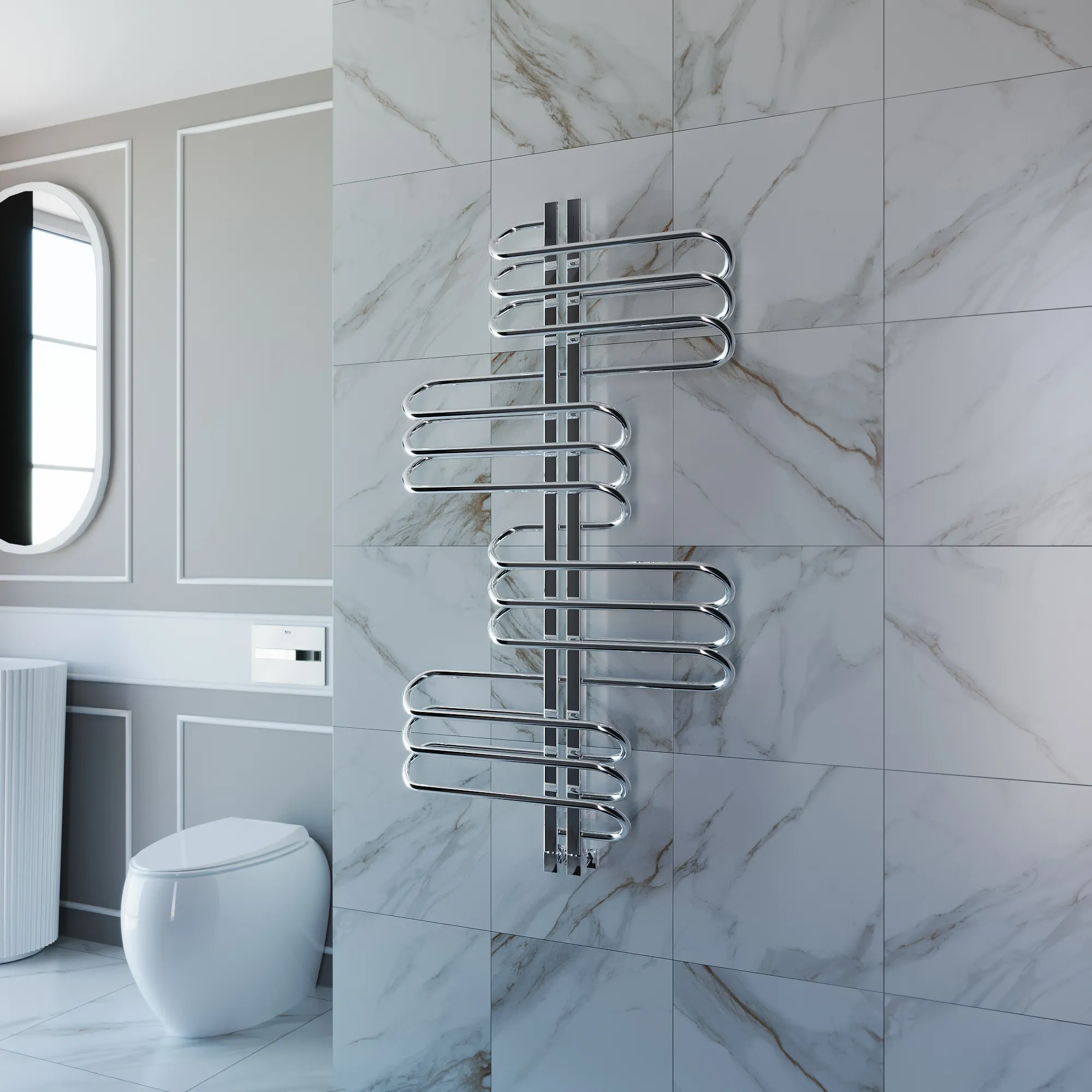 полотенцесушитель, перчатки, комплект дюбелей, винтов, шайб, болтов с шестигранной головкой, шестигранный ключ, кран Маевского, инструкция по монтажу