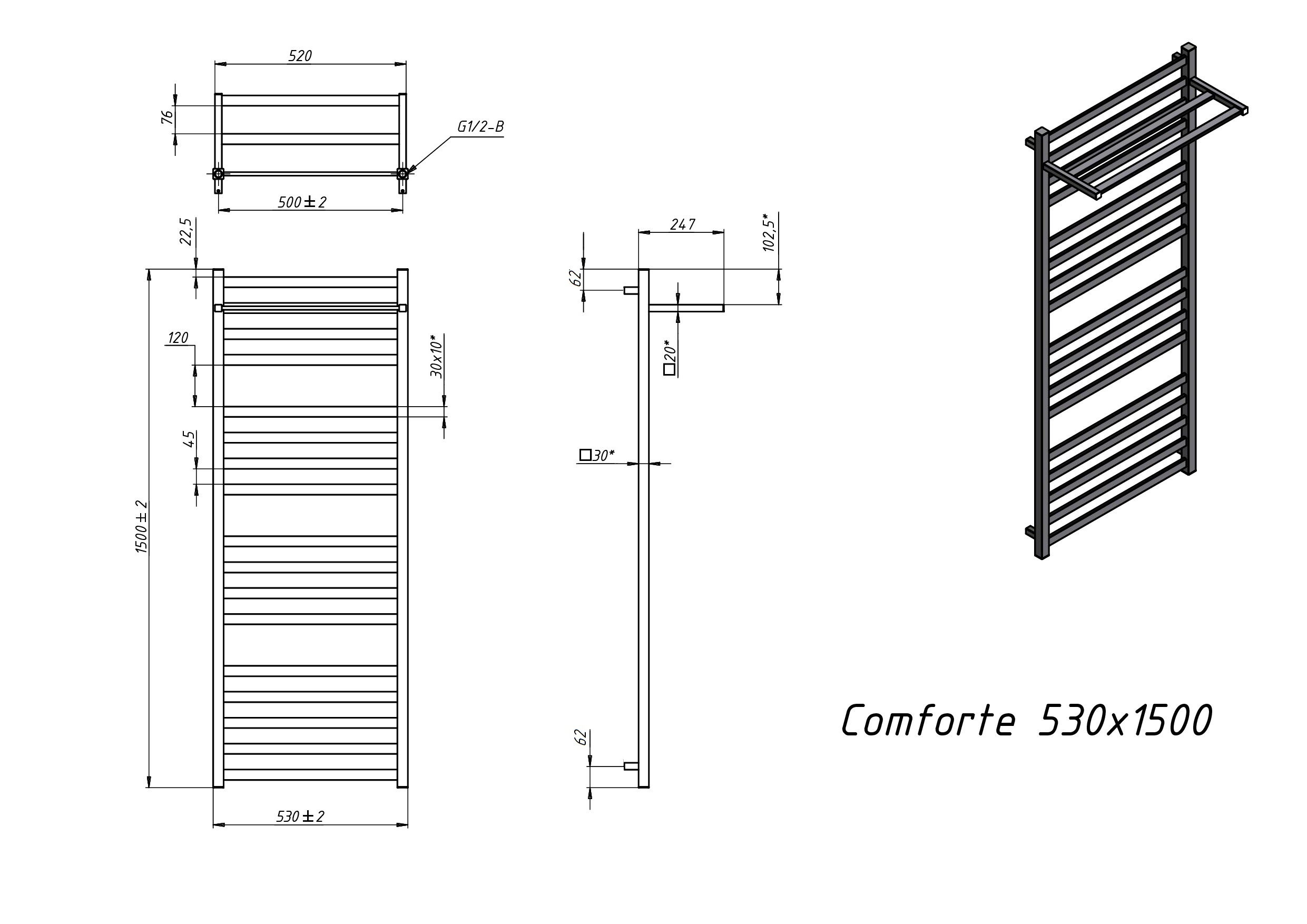 Полотенцесушитель водяной Grota Comfort 530х1500 хром матовый
