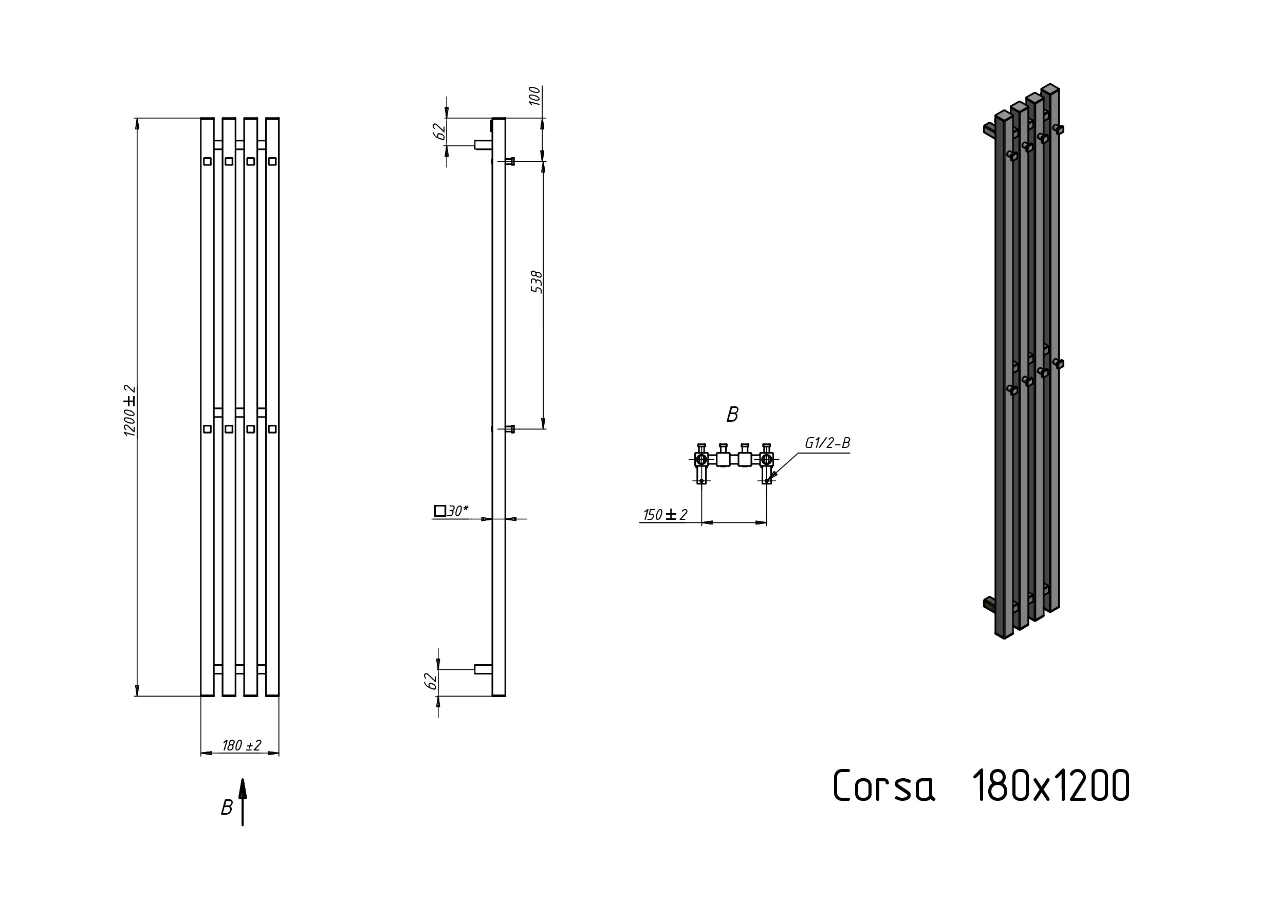Полотенцесушитель водяной Grota Corsa 180х1200 черный