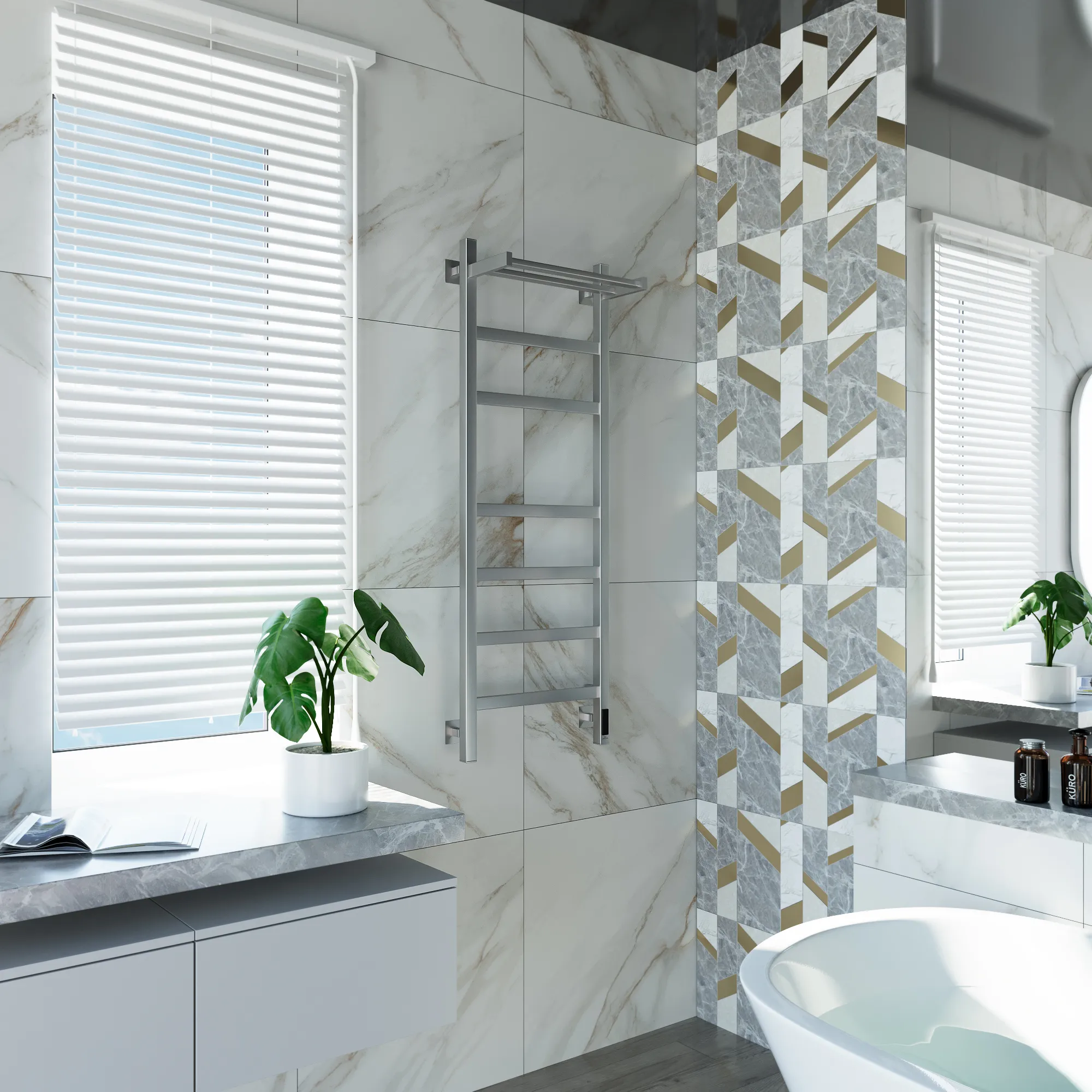 Полотенцесушитель водяной, перчатки, комплект дюбелей, винтов, шайб, болтов с шестигранной головкой, шестигранный ключ, кран Маевского, инструкция по монтажу