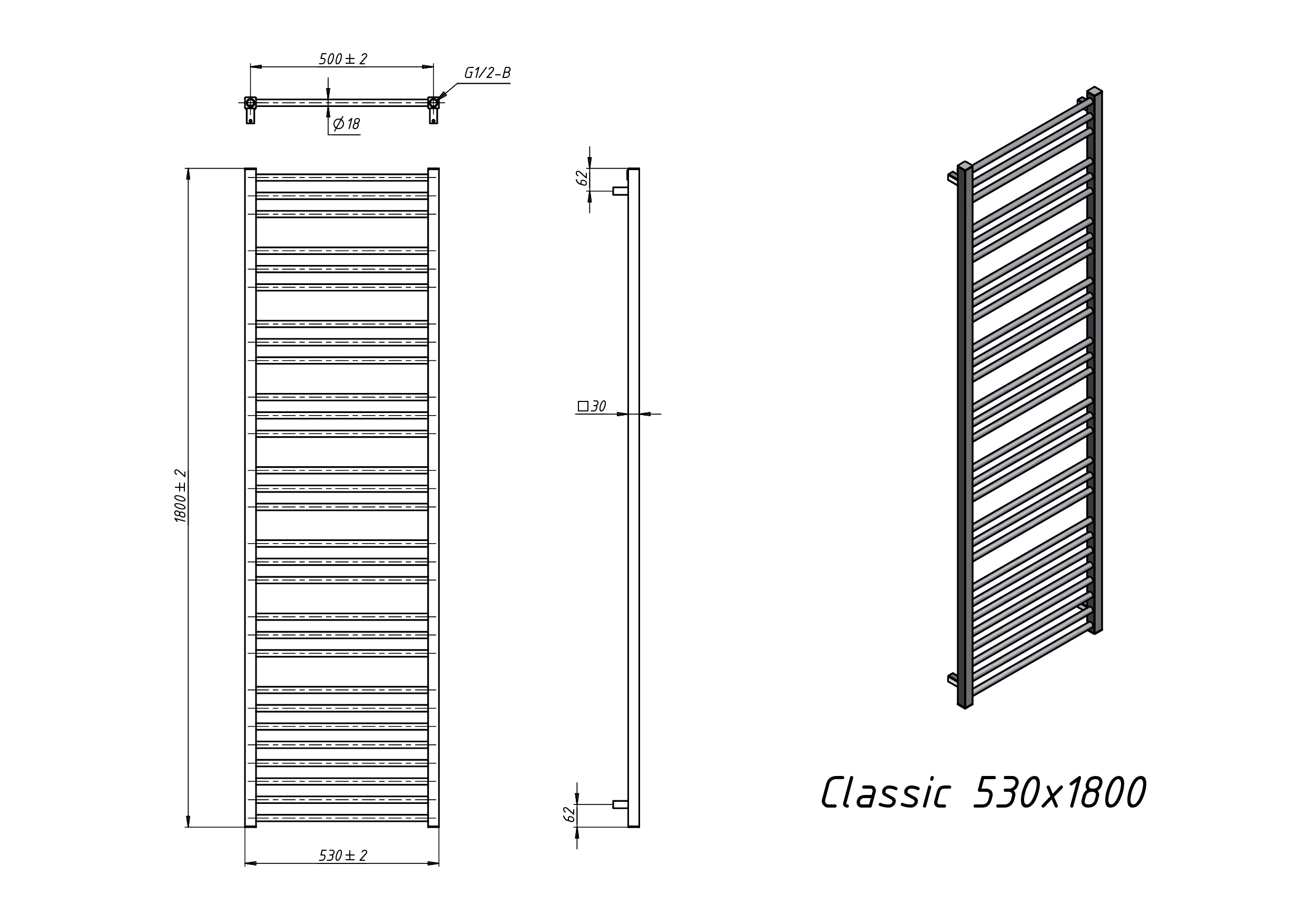 Полотенцесушитель водяной Grota Eco Classic 480x1200 белый