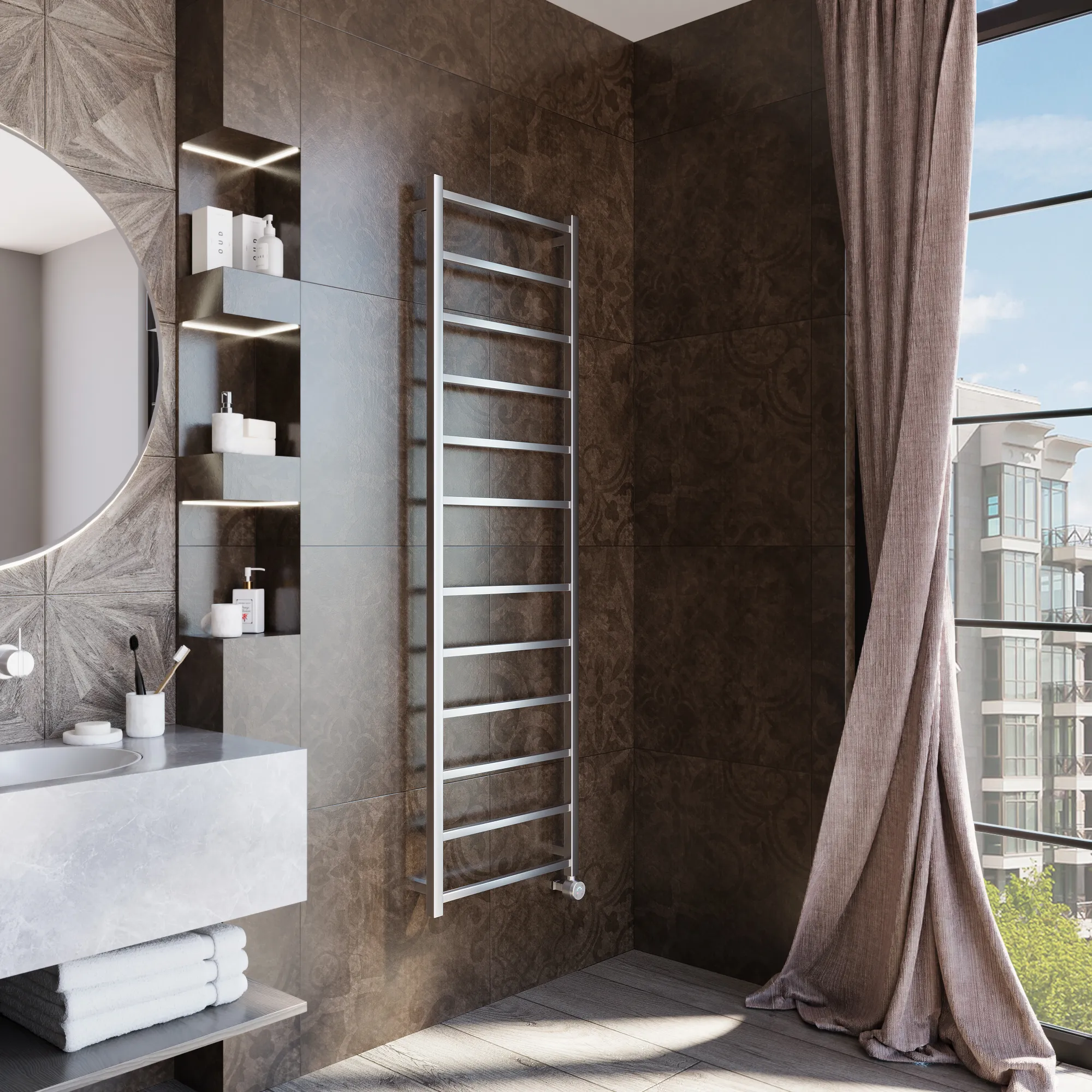 полотенцесушитель, перчатки, комплект дюбелей, винтов, шайб, болтов с шестигранной головкой, шестигранный ключ, кран Маевского, инструкция по монтажу