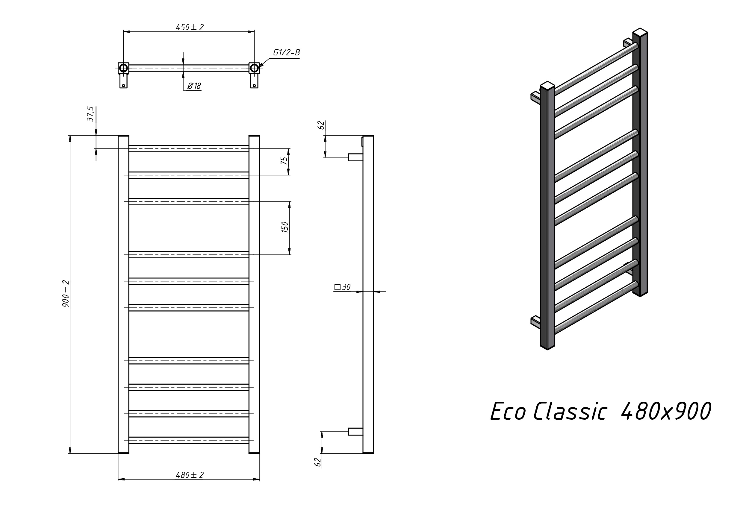 Полотенцесушитель водяной Grota Eco Classic 480x900 черный