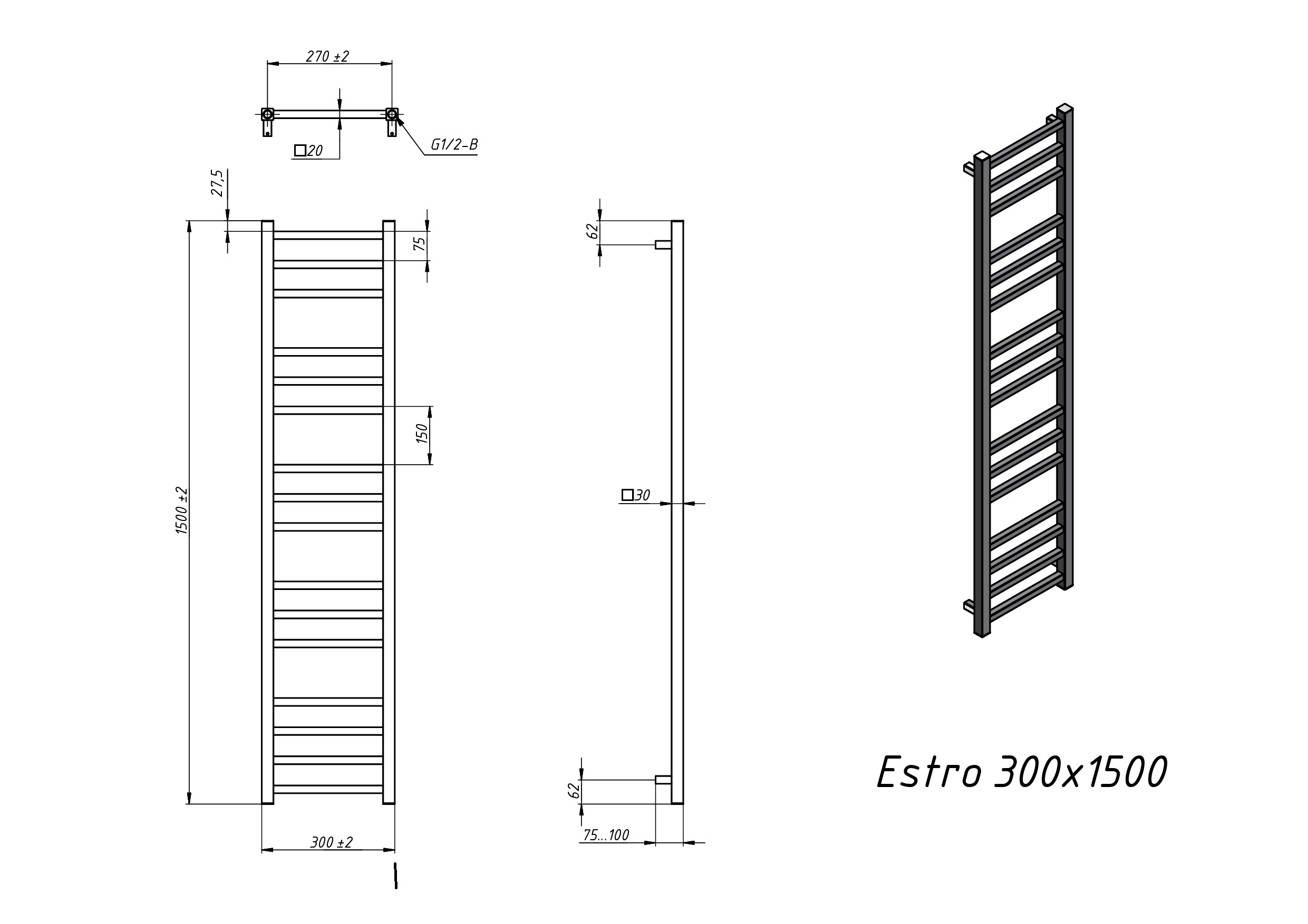 Полотенцесушитель водяной Grota Estro 300x1500 черный