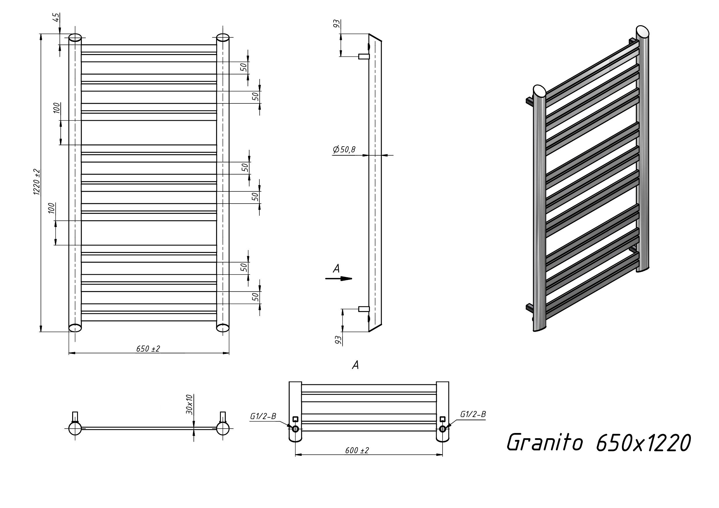 Полотенцесушитель водяной Grota Granito 650x1220 белый
