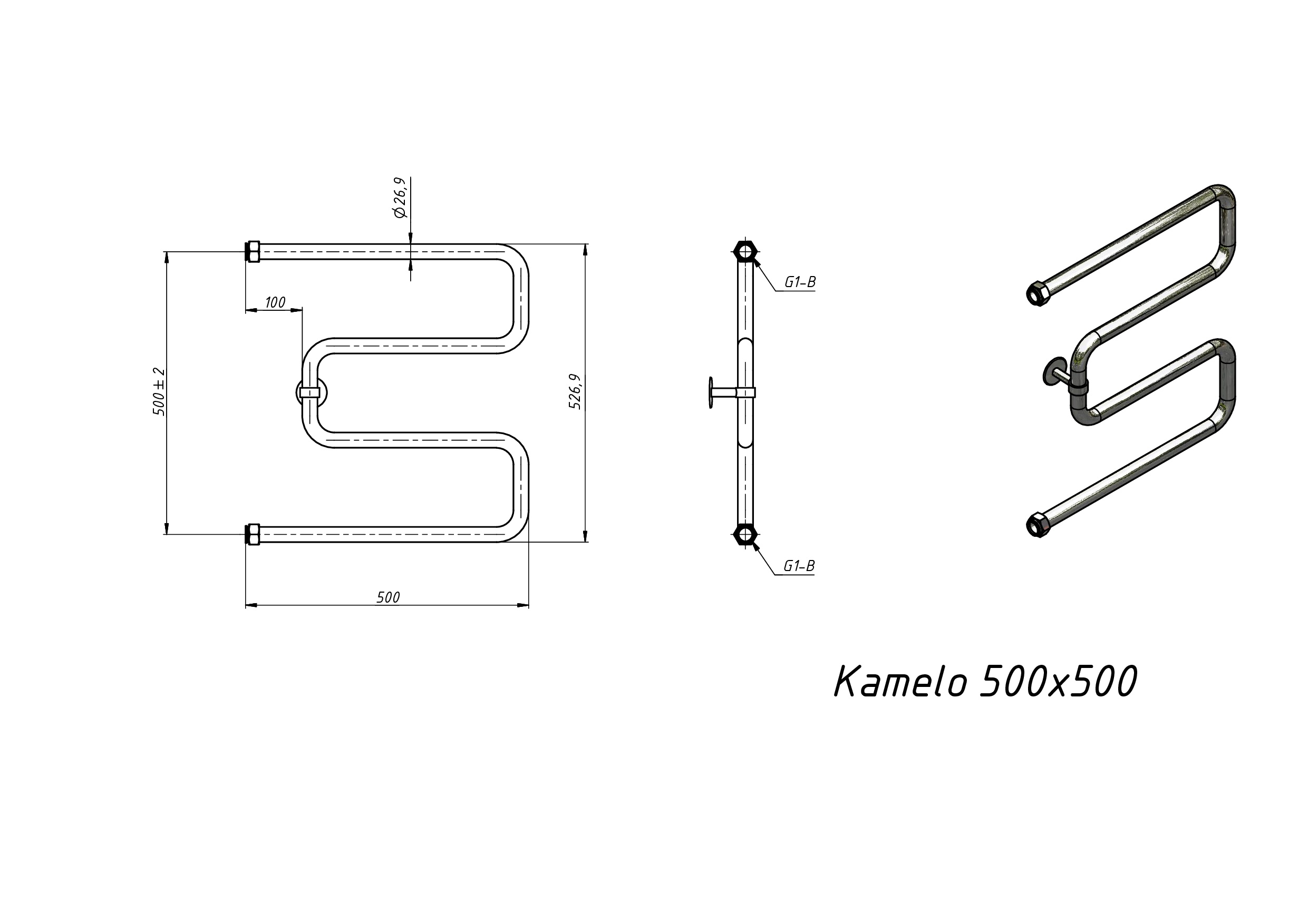 Полотенцесушитель водяной Grota Kamelo 500x500 хром глянцевый