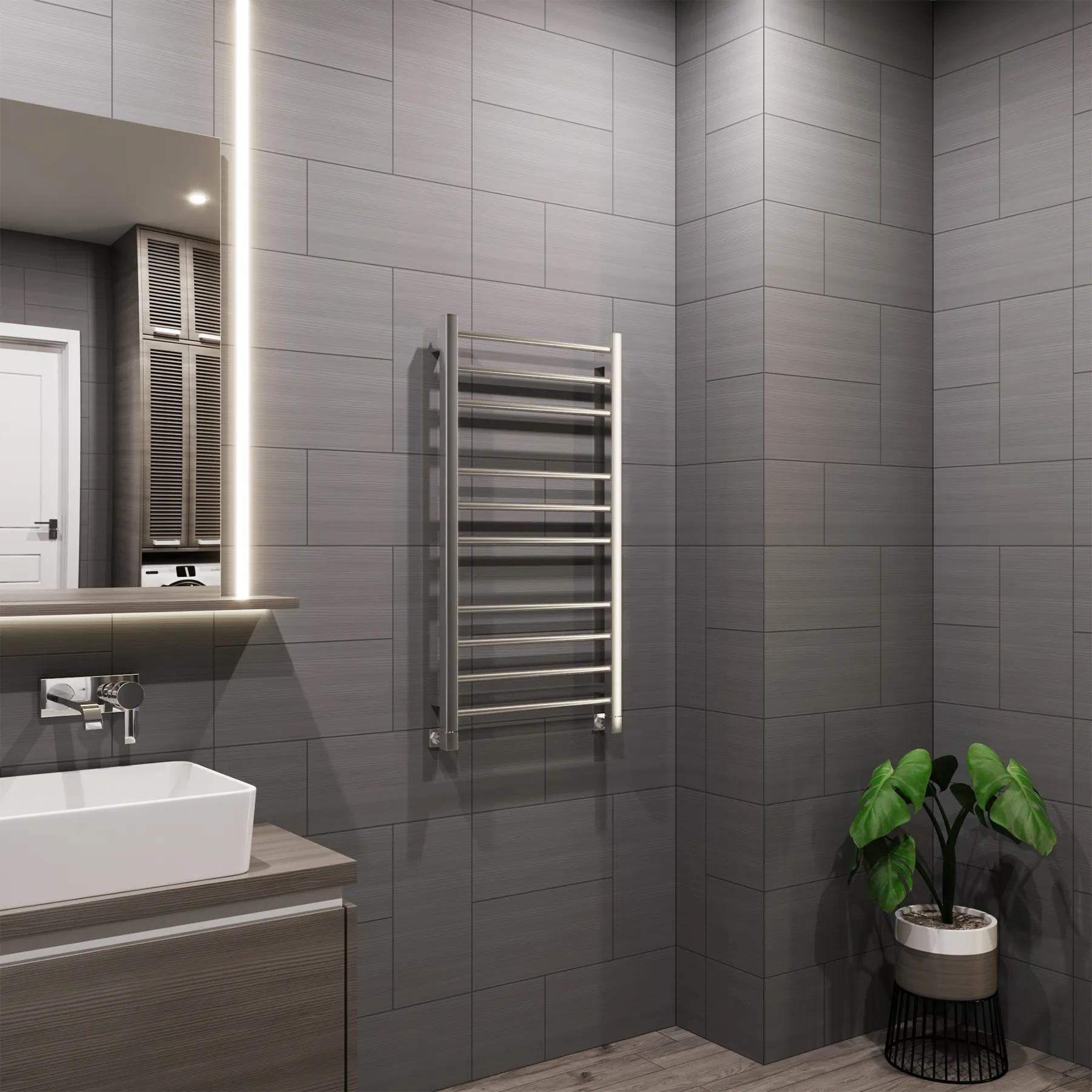 полотенцесушитель, перчатки, комплект дюбелей, винтов, шайб, болтов с шестигранной головкой, шестигранный ключ, кран Маевского, инструкция по монтажу