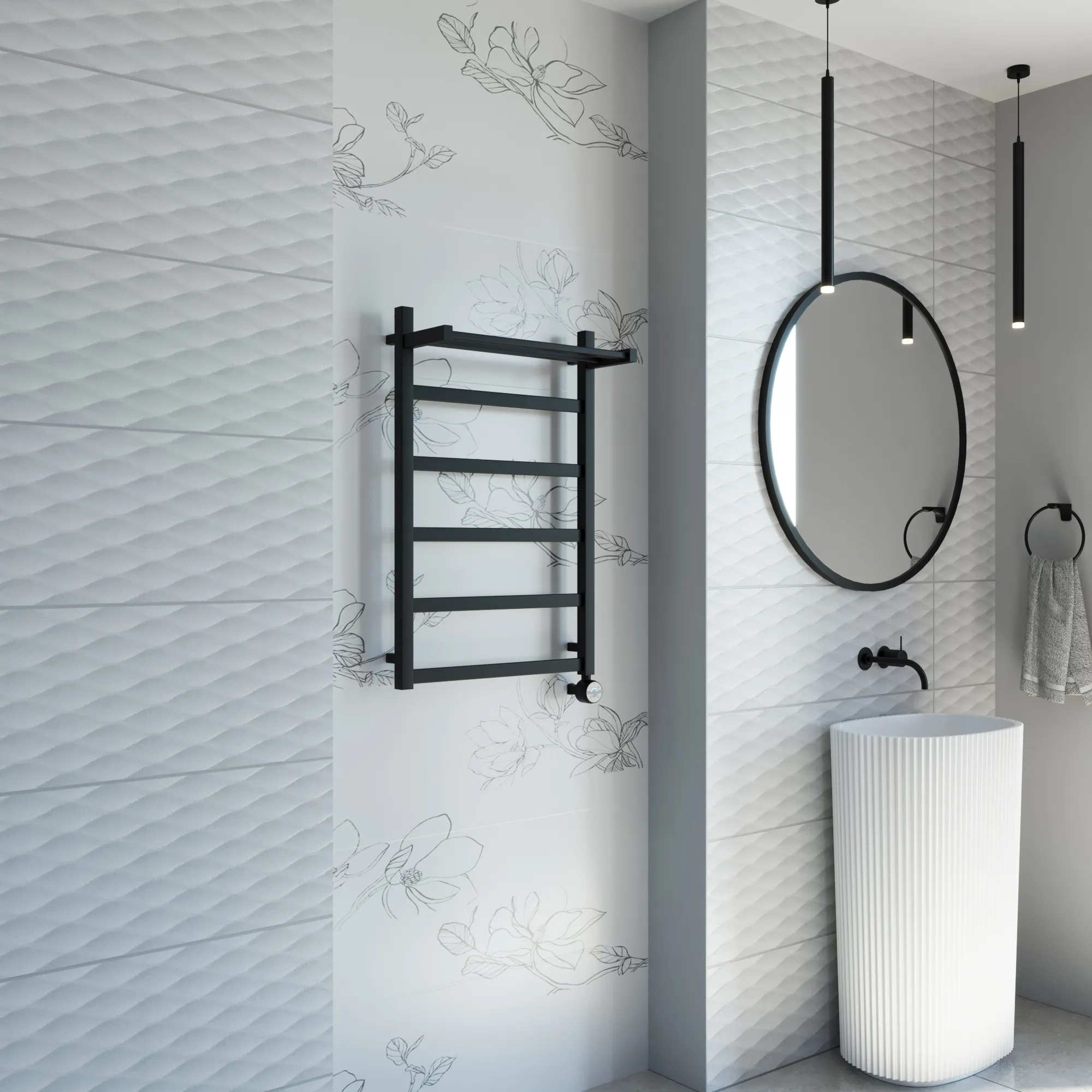 полотенцесушитель, перчатки, комплект дюбелей, винтов, шайб, болтов с шестигранной головкой, шестигранный ключ, кран Маевского, инструкция по монтажу