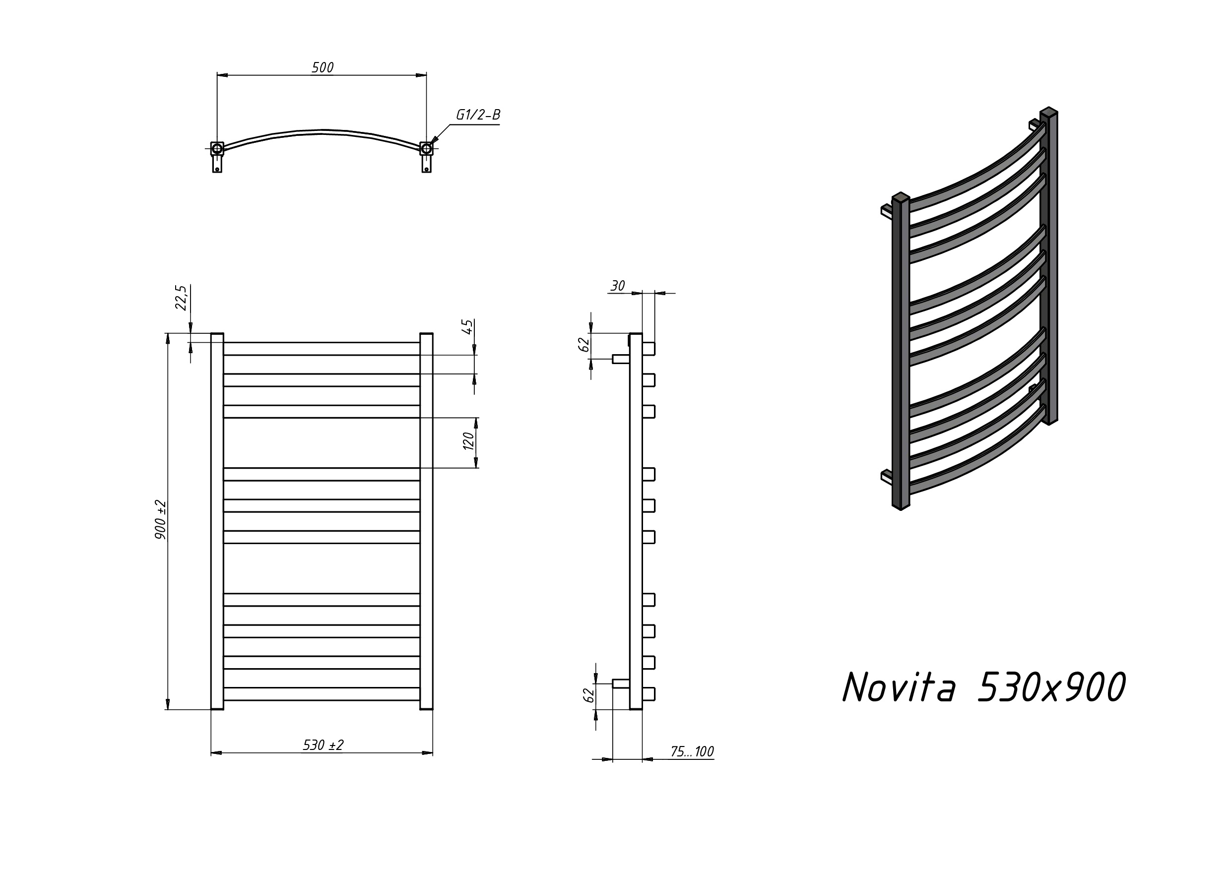 Полотенцесушитель водяной Grota Novita 530x900 белый
