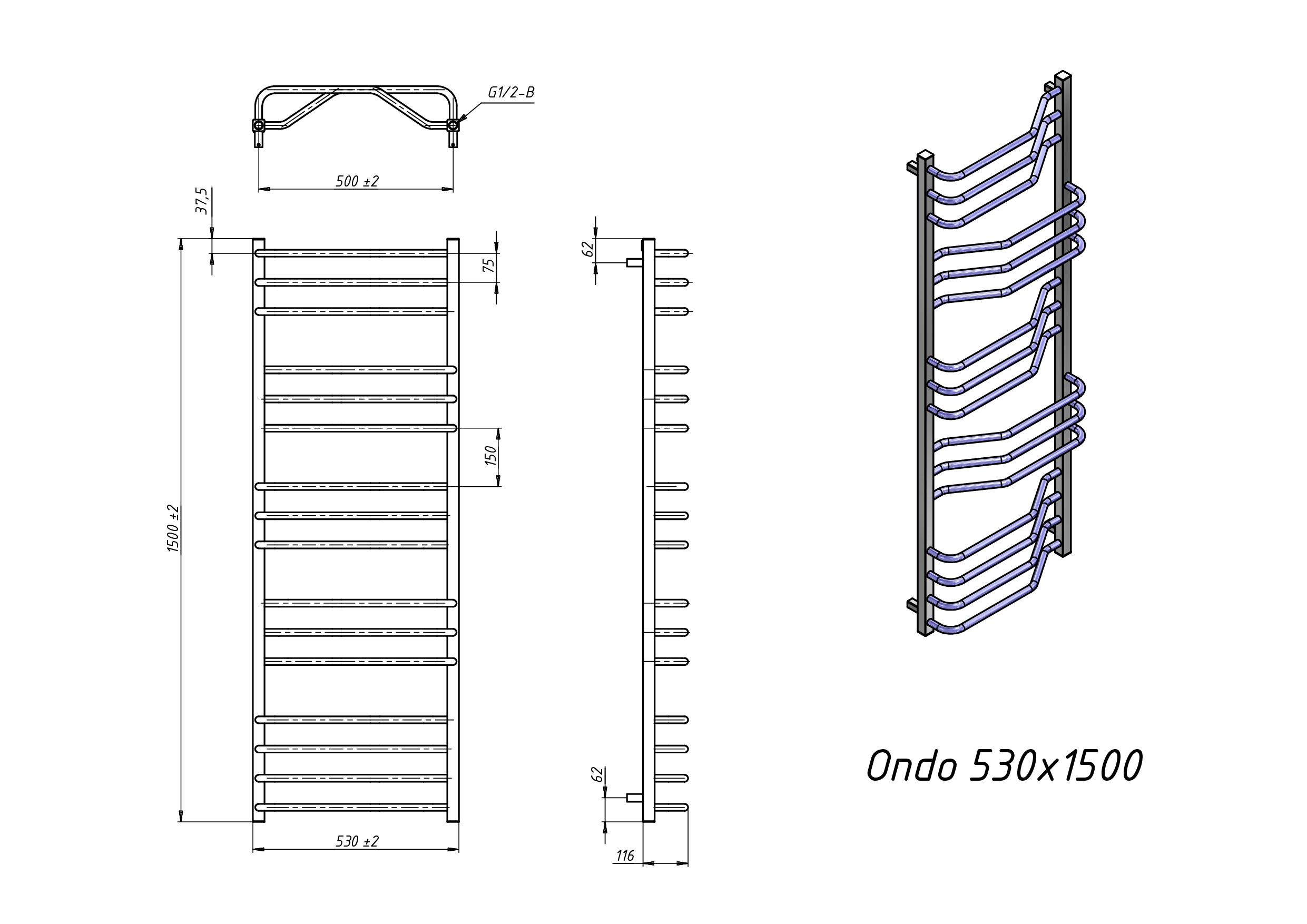 Полотенцесушитель водяной Grota Ondo 530х1500 белый