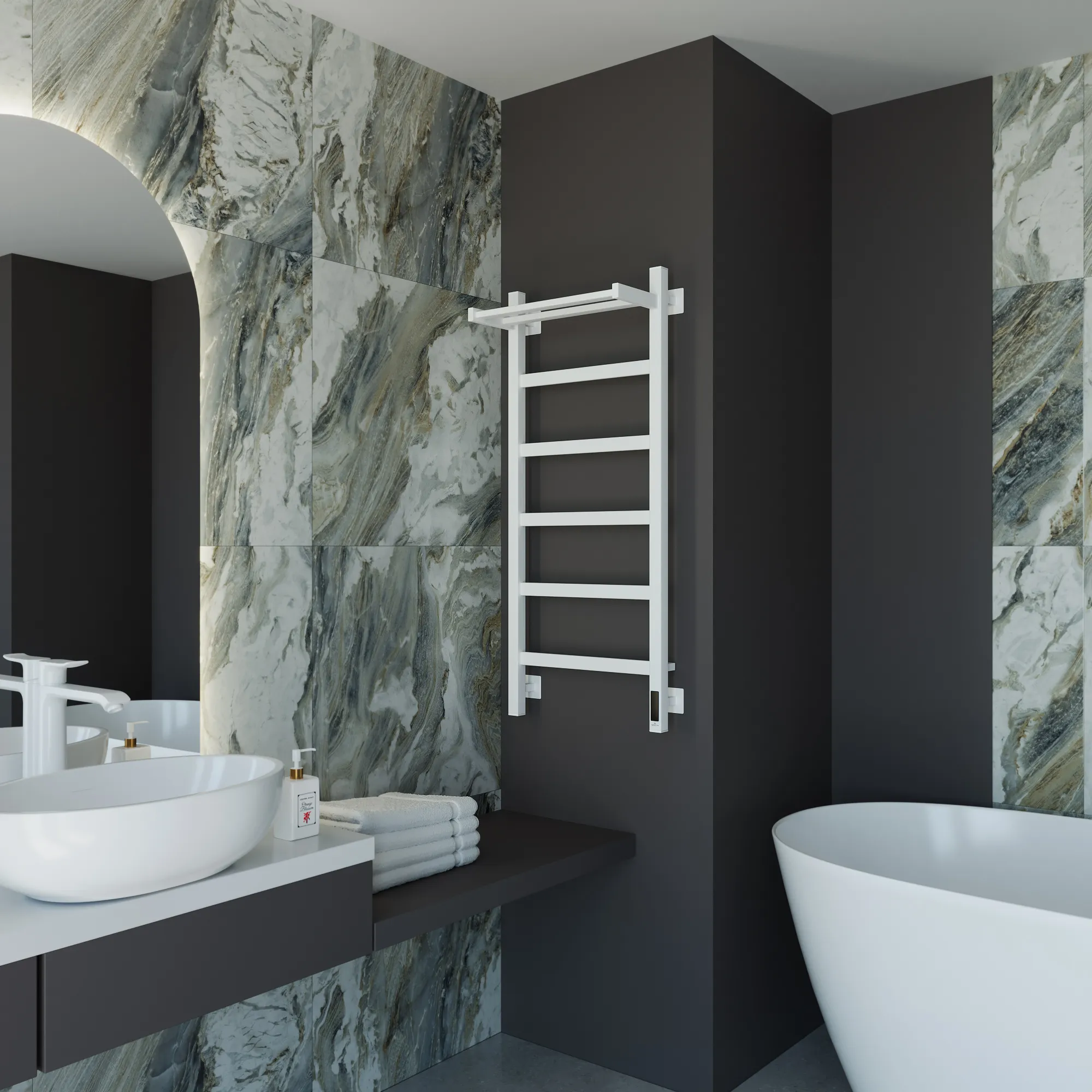 полотенцесушитель, перчатки, комплект дюбелей, винтов, шайб, болтов с шестигранной головкой, шестигранный ключ, кран Маевского, инструкция по монтажу