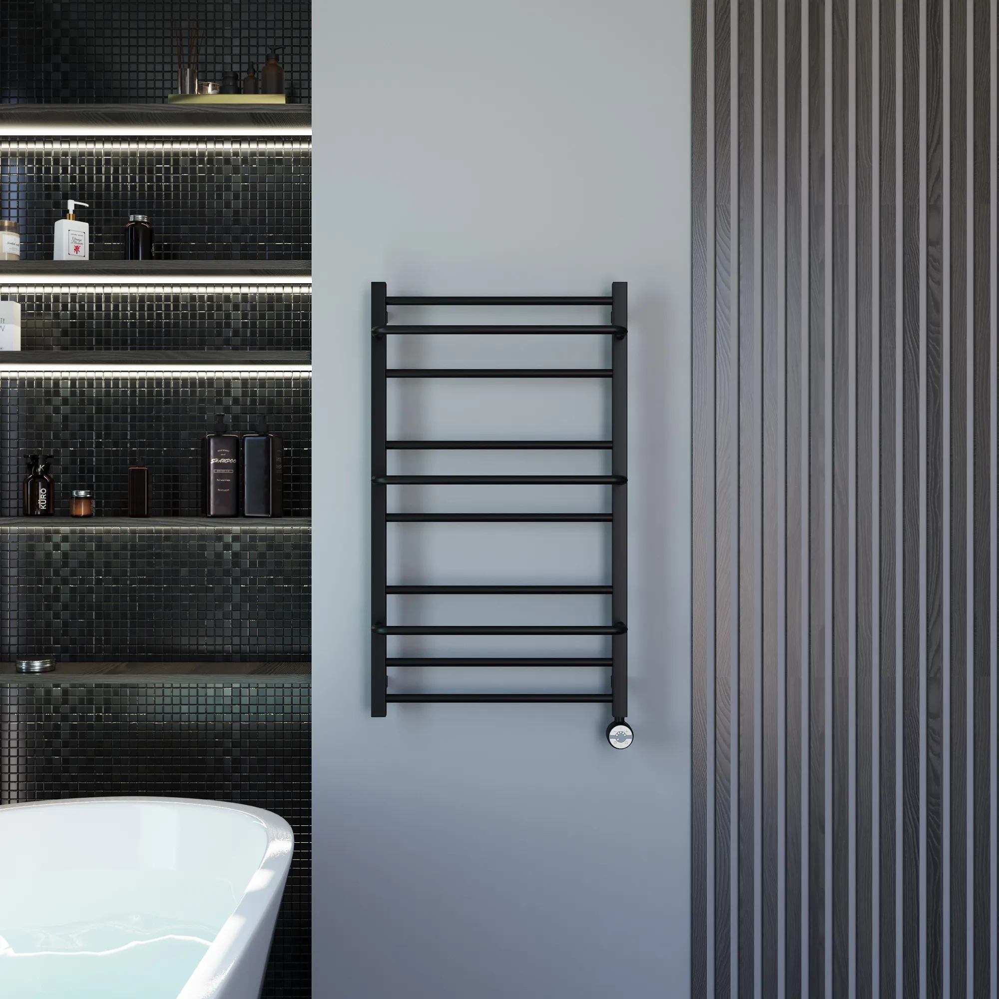 полотенцесушитель, перчатки, комплект дюбелей, винтов, шайб, болтов с шестигранной головкой, шестигранный ключ, кран Маевского, инструкция по монтажу