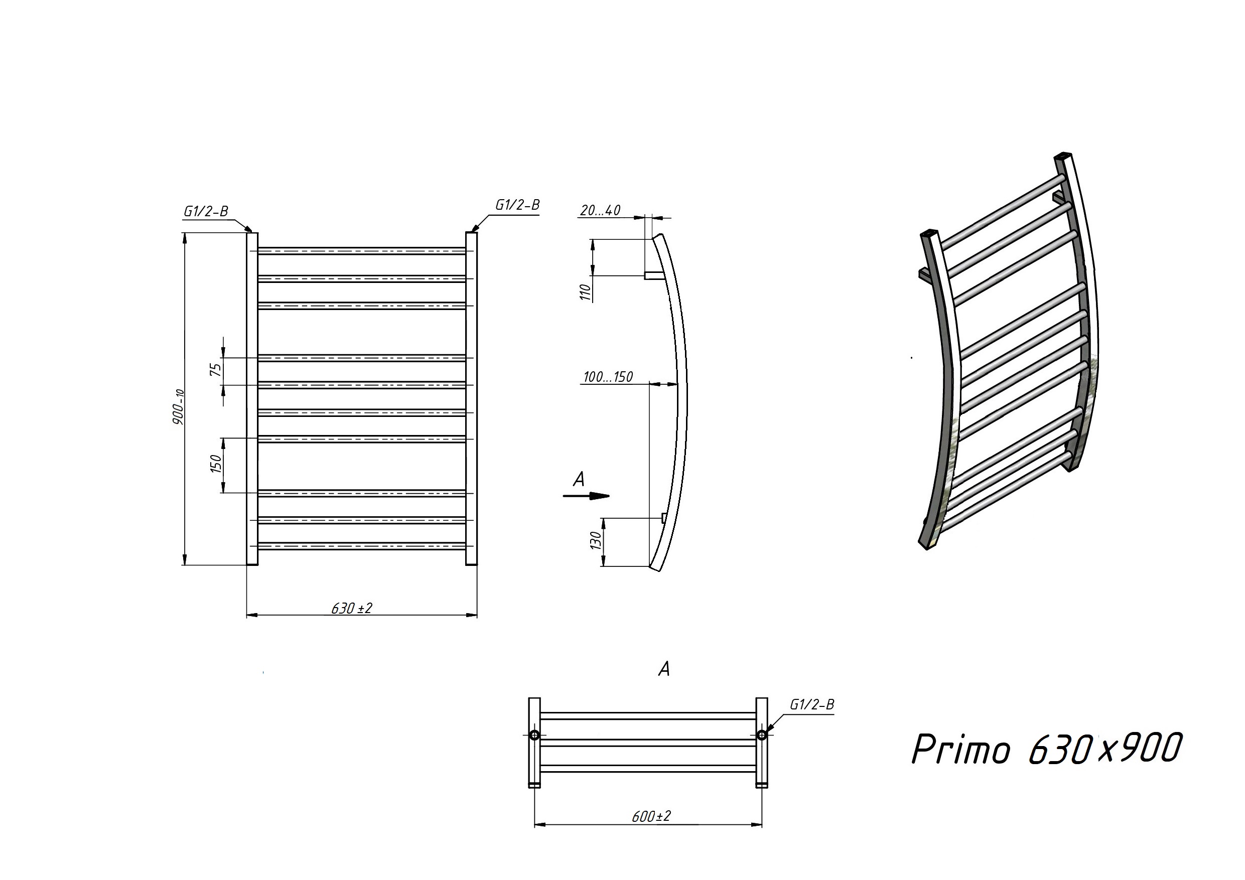 Полотенцесушитель водяной Grota Primo 630x900 белый