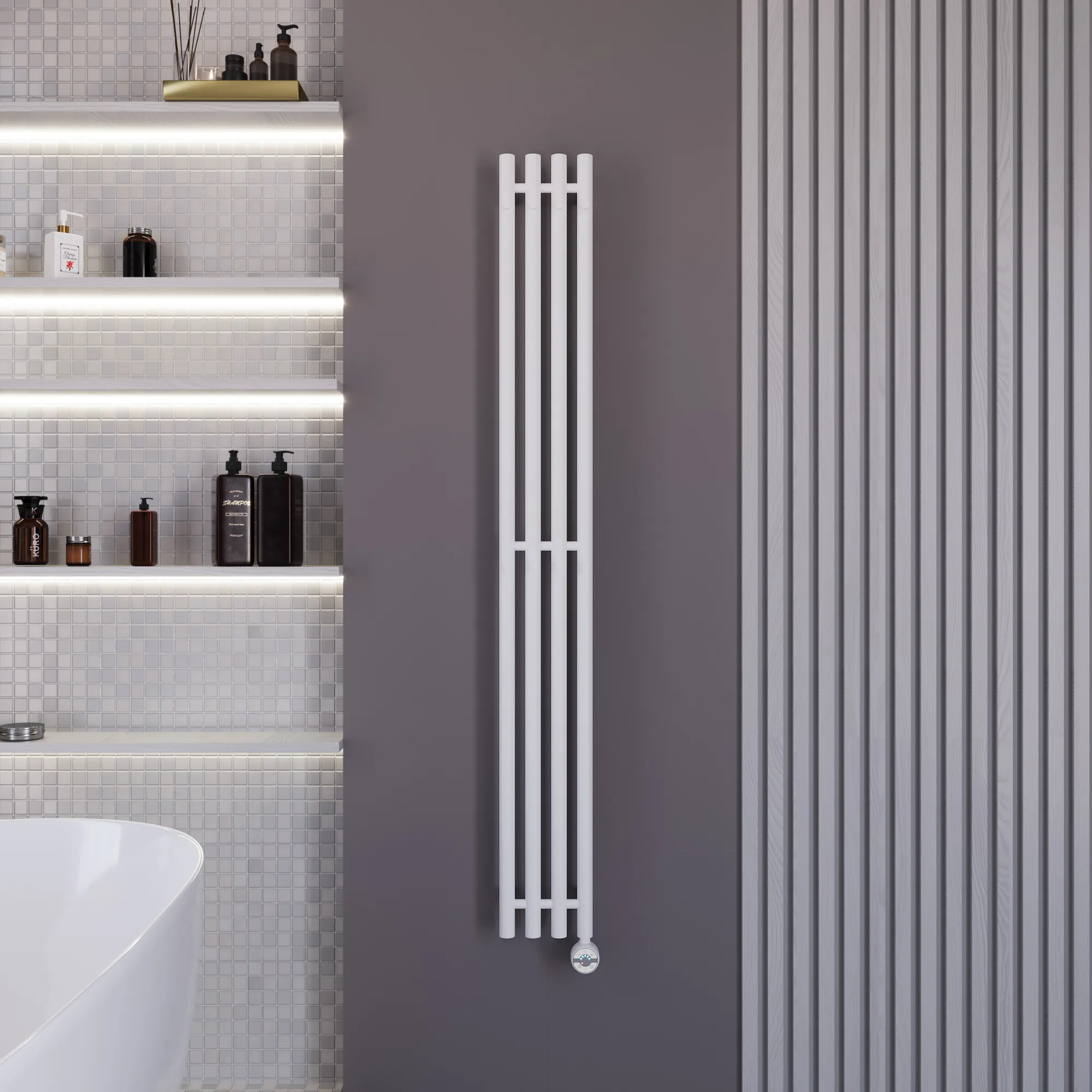 полотенцесушитель, перчатки, комплект дюбелей, винтов, шайб, болтов с шестигранной головкой, шестигранный ключ, кран Маевского, инструкция по монтажу