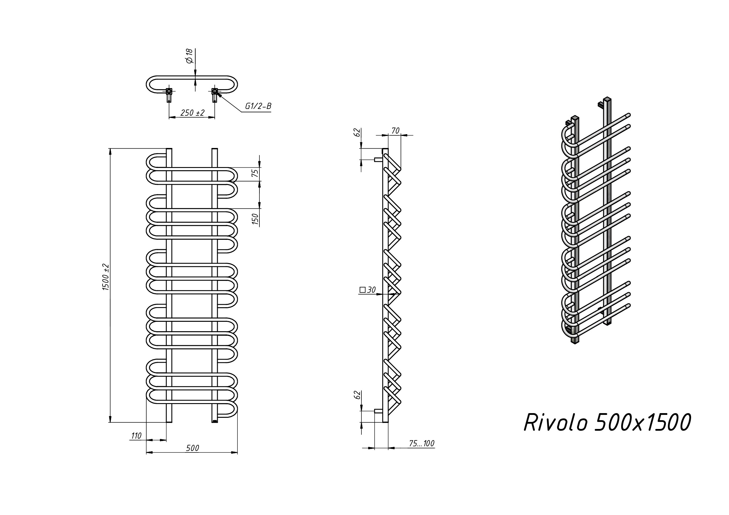Полотенцесушитель водяной Grota Rivolo 500x1500 черный