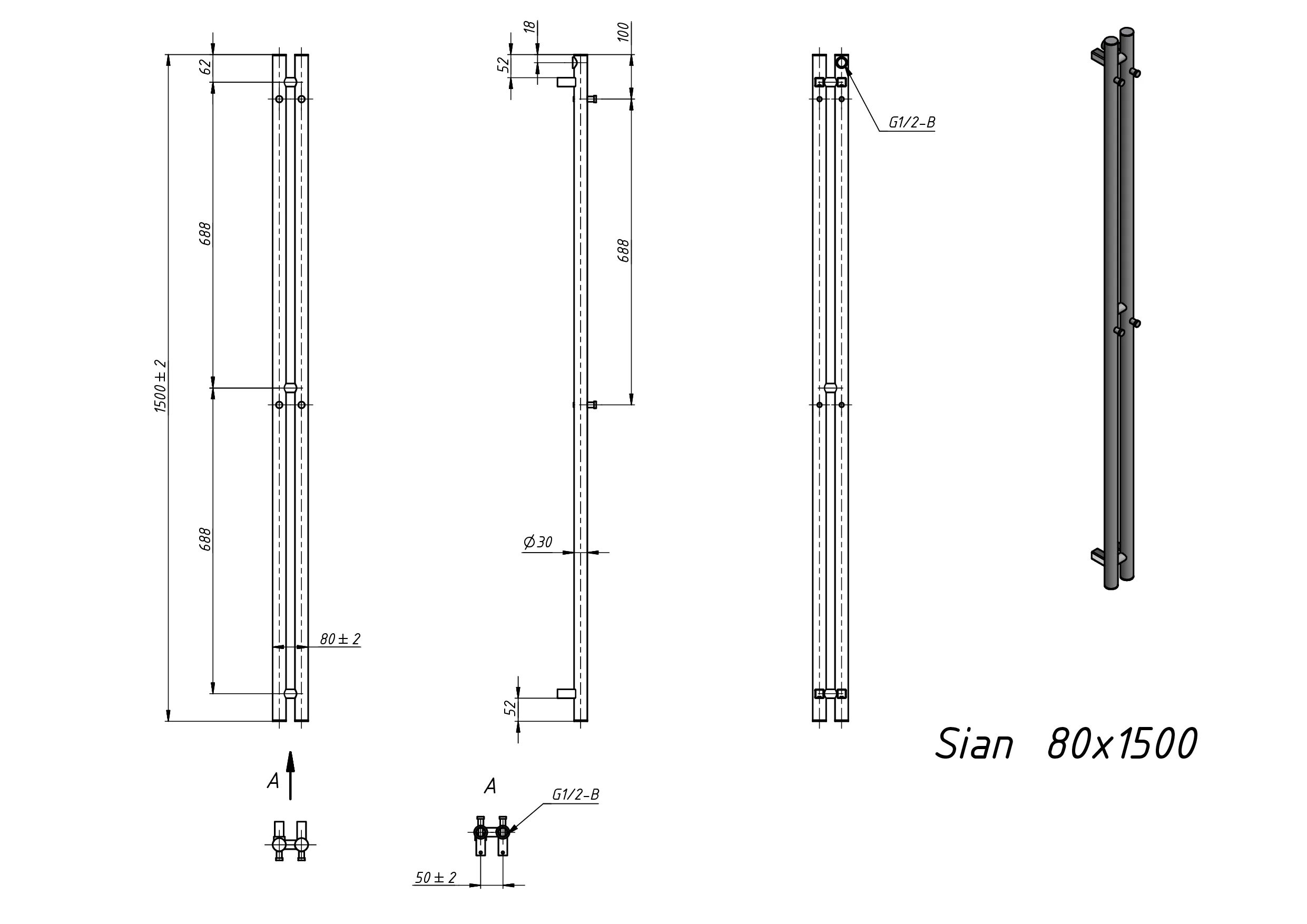 Полотенцесушитель водяной Grota Sian 80х1500 хром матовый