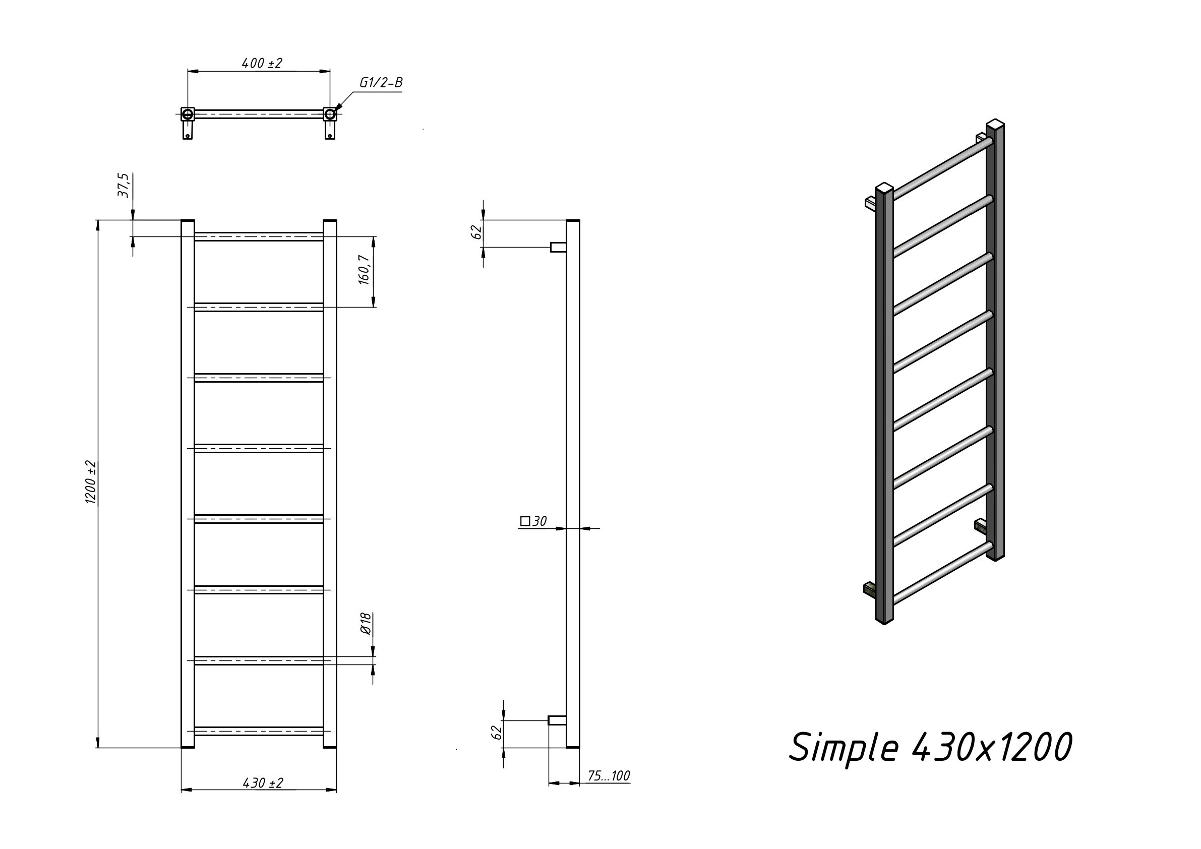 Полотенцесушитель водяной Grota Simple 430x1200 белый