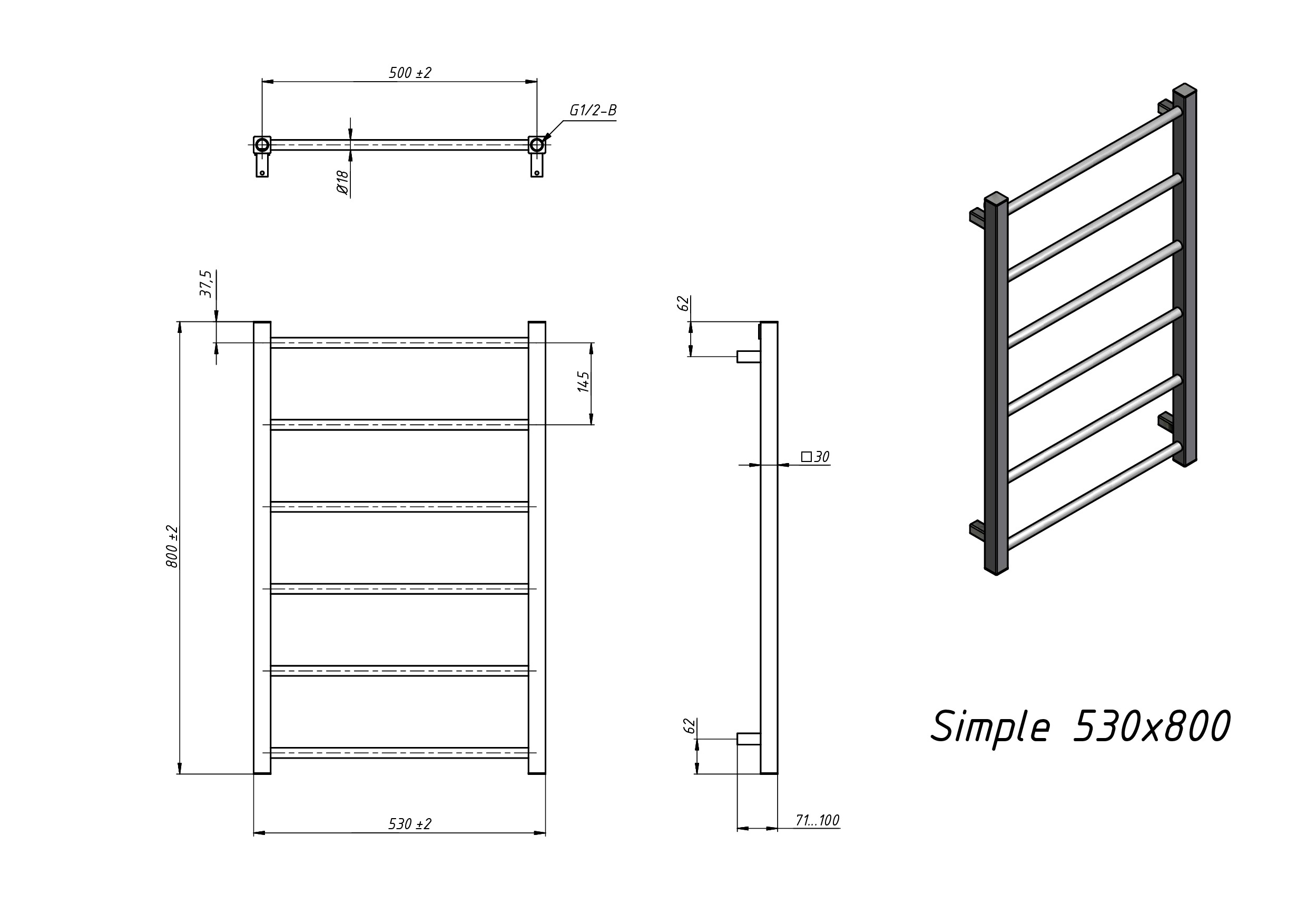 Полотенцесушитель водяной Grota Simple 530x800 белый