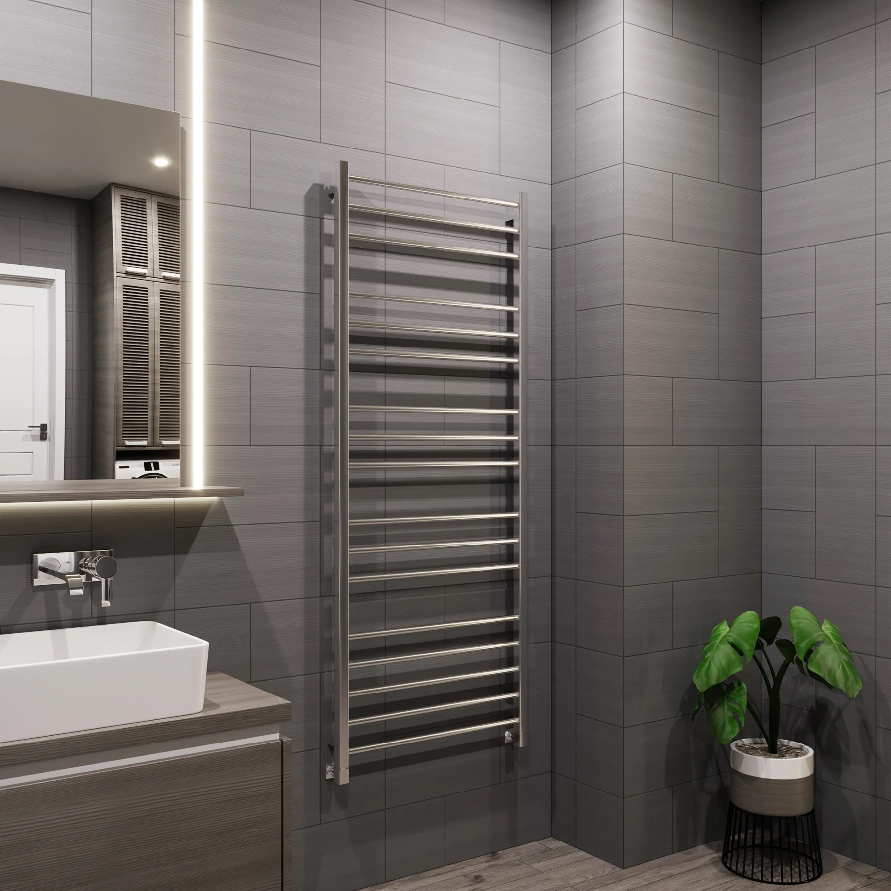 полотенцесушитель, перчатки, комплект дюбелей, винтов, шайб, болтов с шестигранной головкой, шестигранный ключ, кран Маевского, инструкция по монтажу