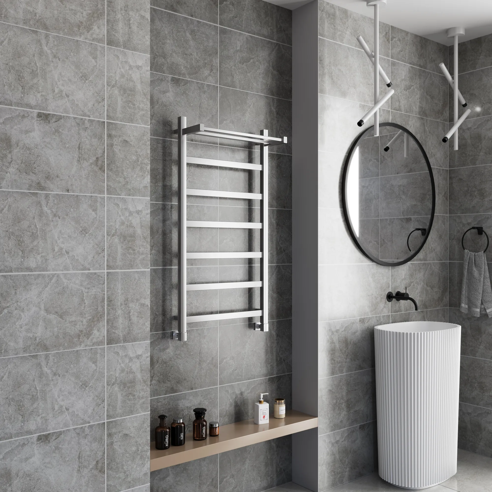 Полотенцесушитель водяной Grota Soffi P с полкой 530x1000 хром матовый