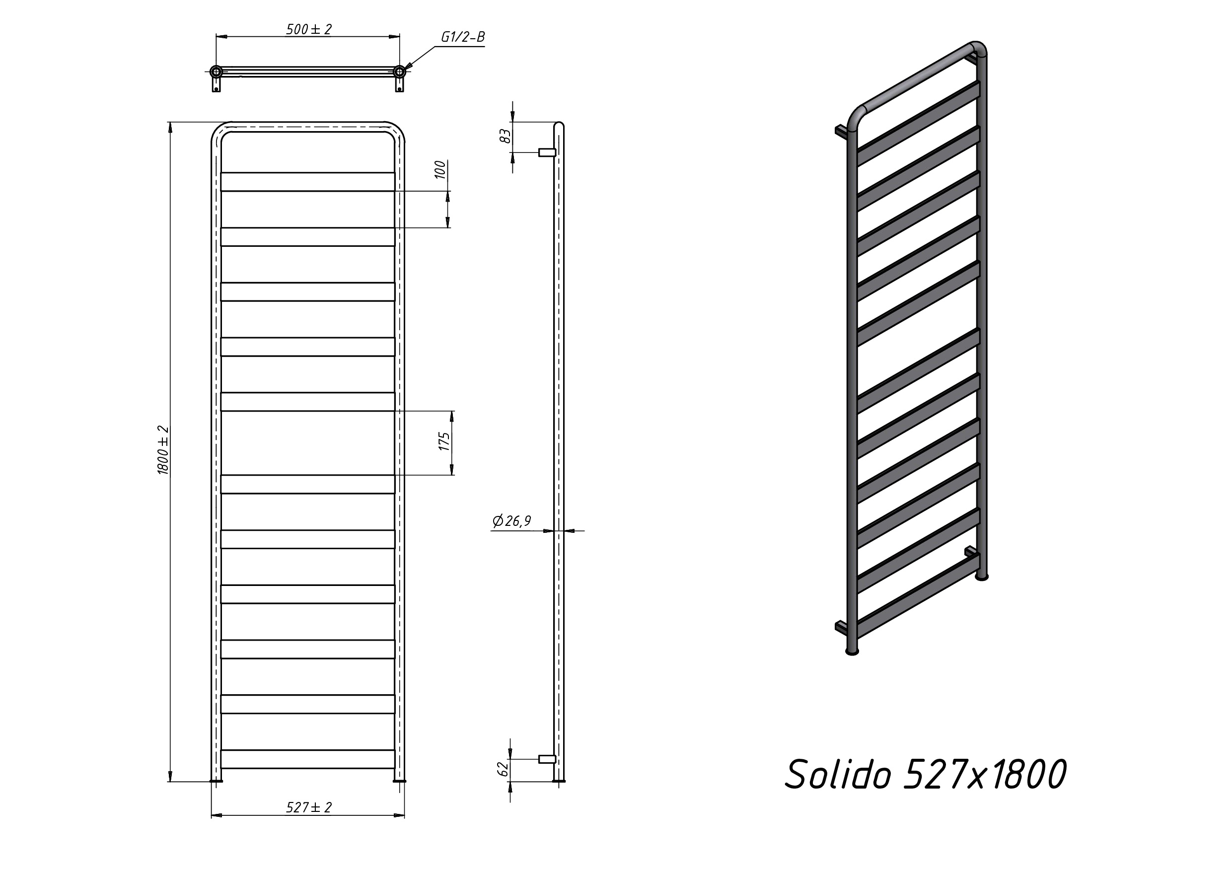 Полотенцесушитель водяной Grota Solido 527x1800 черный