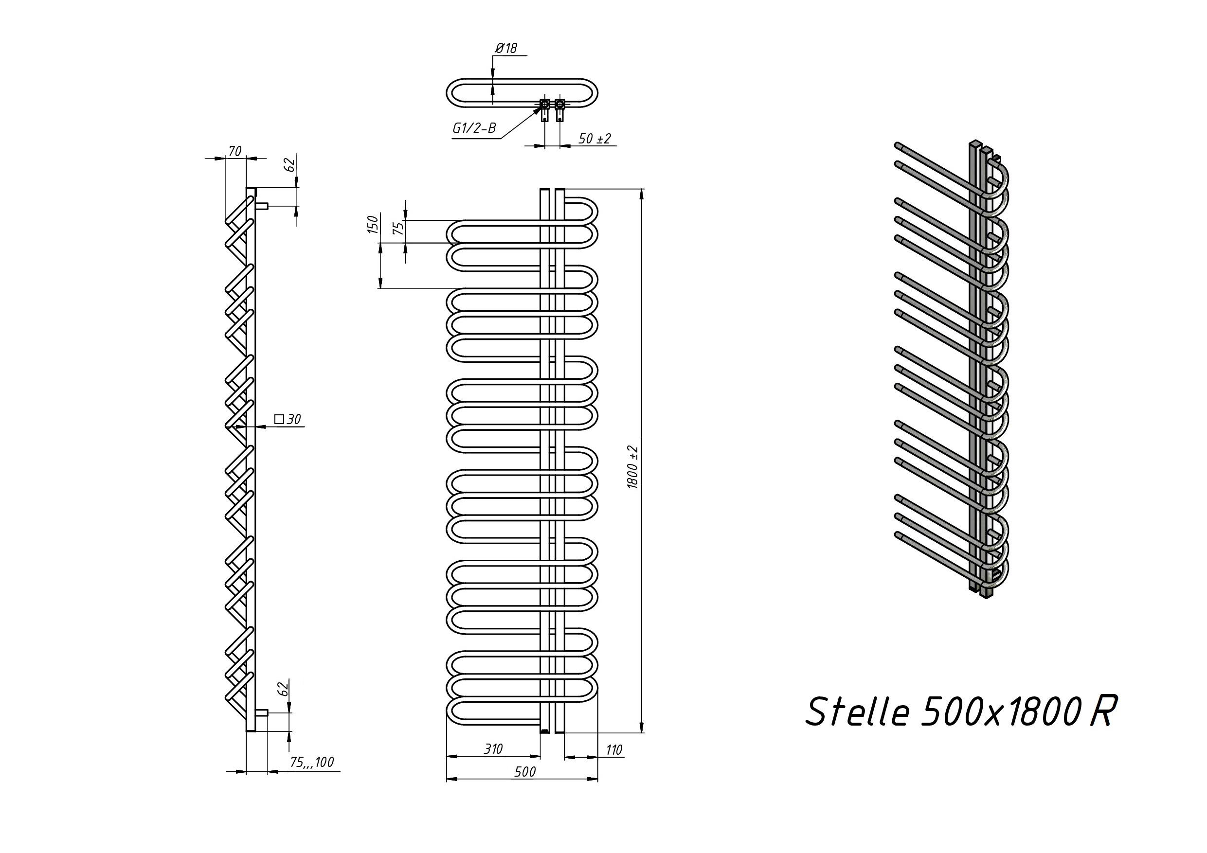 Полотенцесушитель водяной Grota Stelle 500x1800/r белый