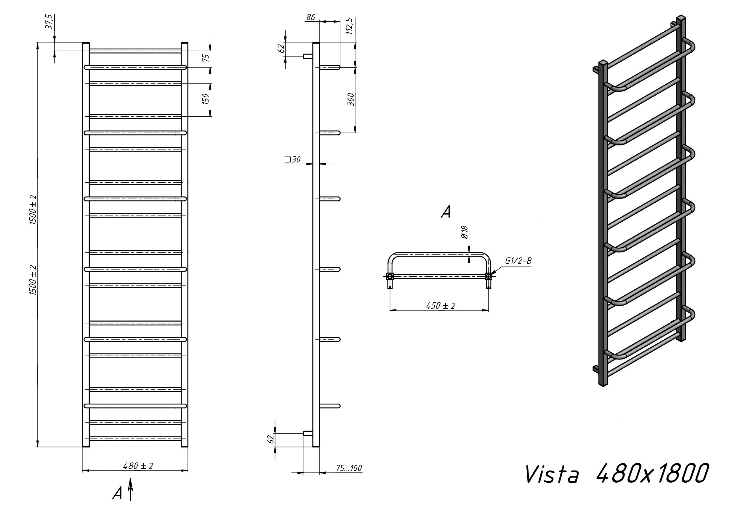 Полотенцесушитель водяной Grota Vista 480х1800 белый